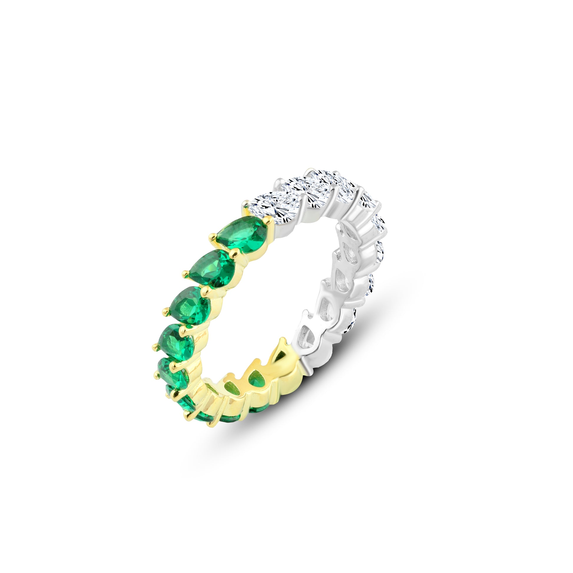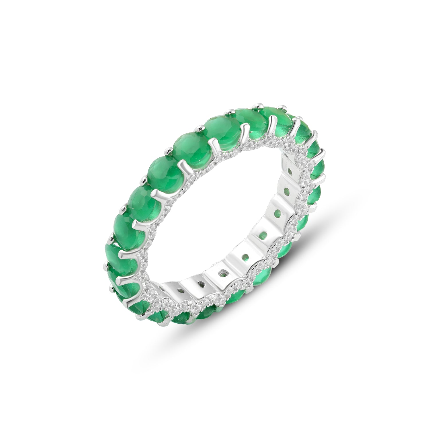 خاتم فضة مرصع بأحجار زمرد خضراء