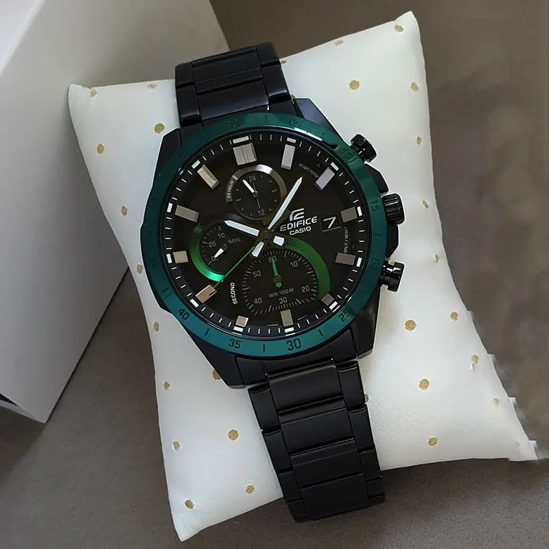 The Casio Edifice EFR-571DC-1AVUDF men’s watch features a sleek design that blends strength with precision. It boasts a black ion-plated case for a luxurious, long-lasting finish, paired with a matching band that adds a modern touch to the overall look.