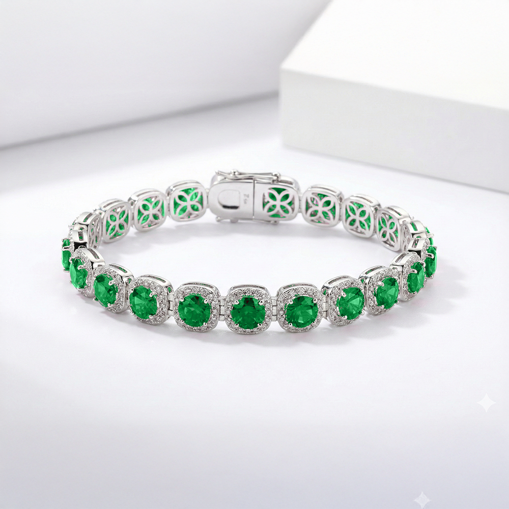 Shine with timeless elegance wearing the 925 Silver Bracelet with Green Stones, a refined piece that combines simplicity and luxury in perfect harmony. Expertly crafted from genuine 925 silver, it offers lasting shine and unmatched sophistication.