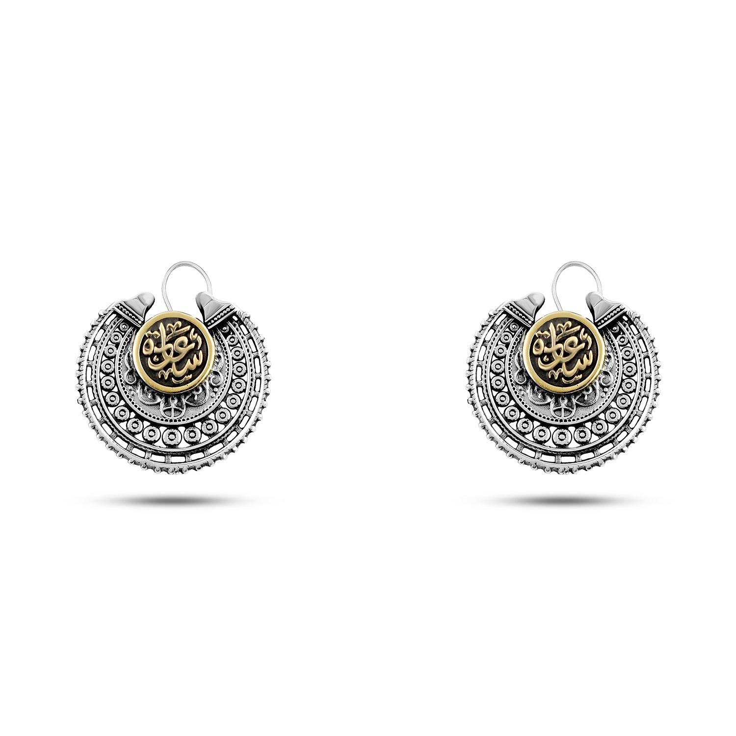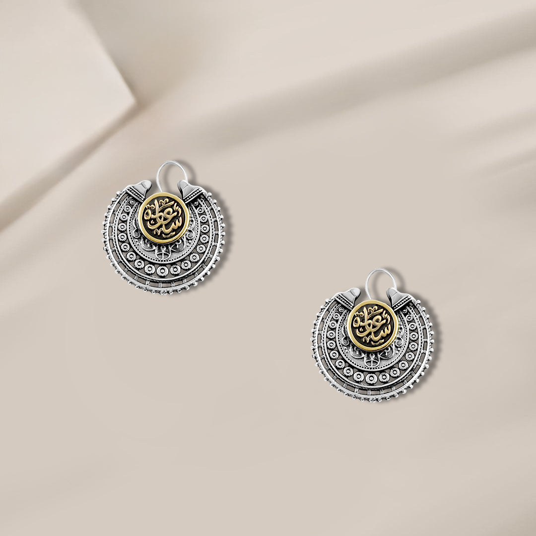 A genuine 925 silver earring elegantly engraved with the Arabic word “Saa’da” (Happiness), symbolizing joy, positivity, and optimism.