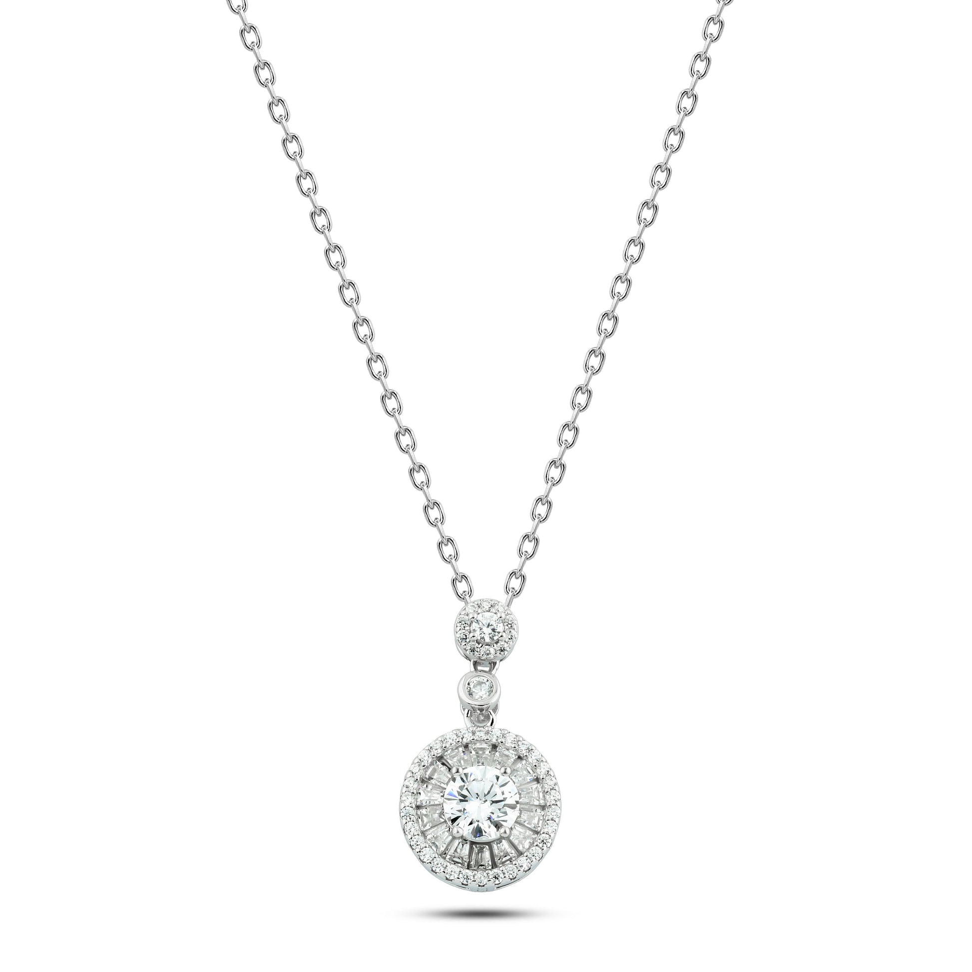 925 Silver Necklace – Circular Halo Design with Brilliant Center Stone