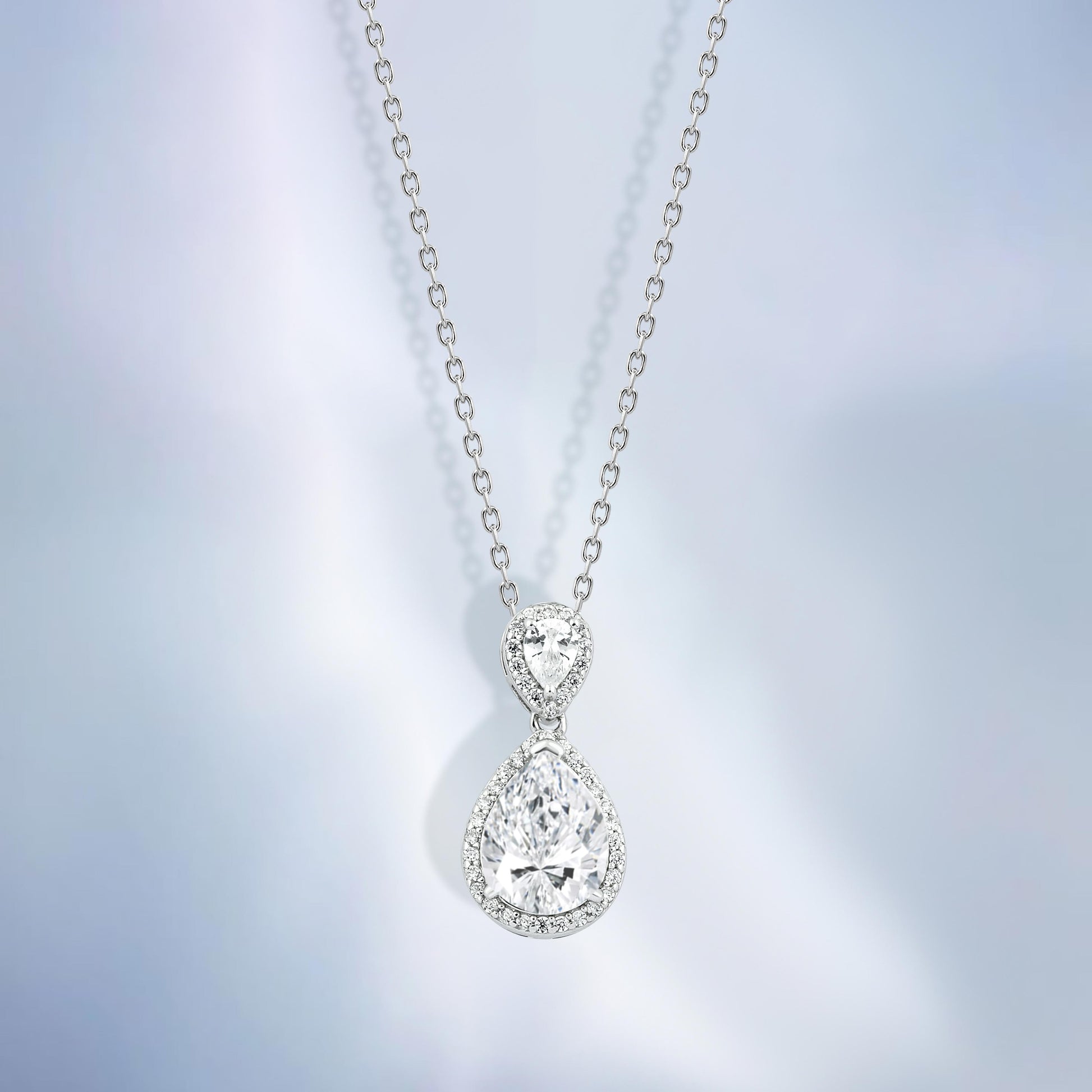 925 Silver Necklace – Double Teardrop Design with Sparkling Stones