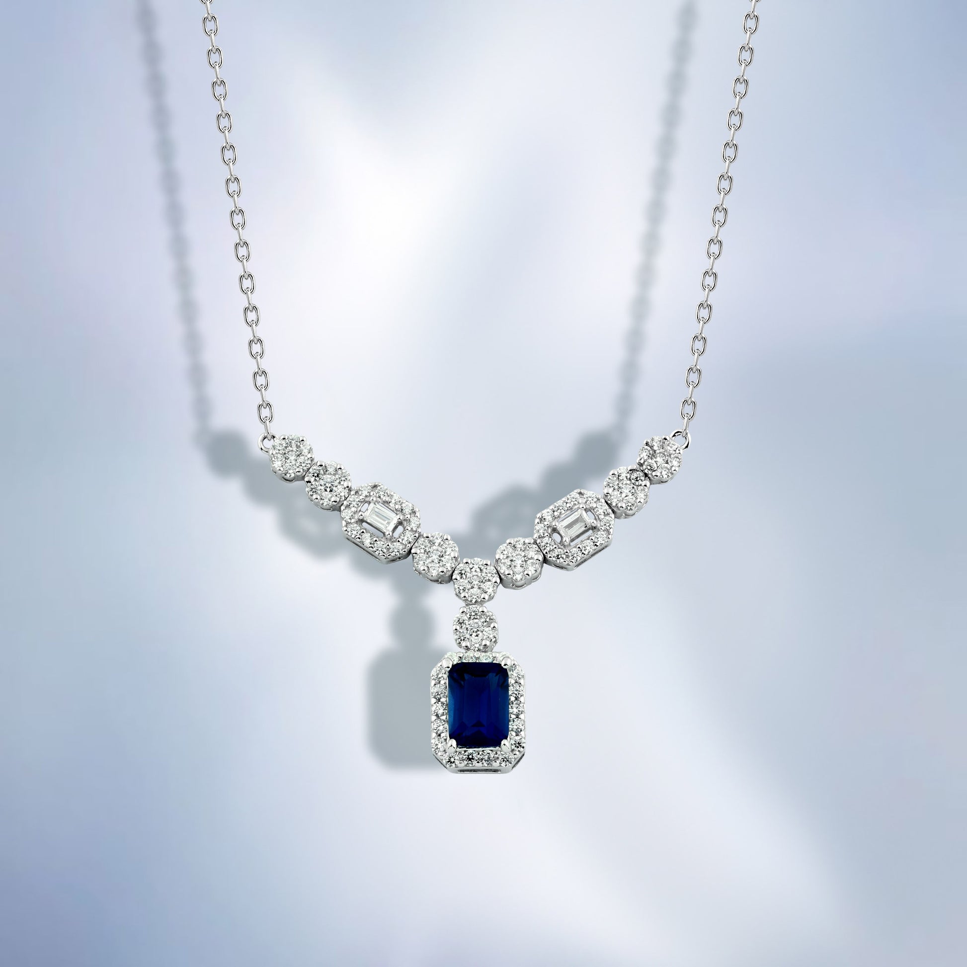 The “Royal Blue Stone Necklace” – 925 Silver is a luxurious piece that reflects elegance and strength in a classic design with a modern touch. It features a rectangular royal blue stone with a deep, captivating color symbolizing sophistication and confidence, surrounded by a frame adorned with shimmering stones that enhance its brilliance.