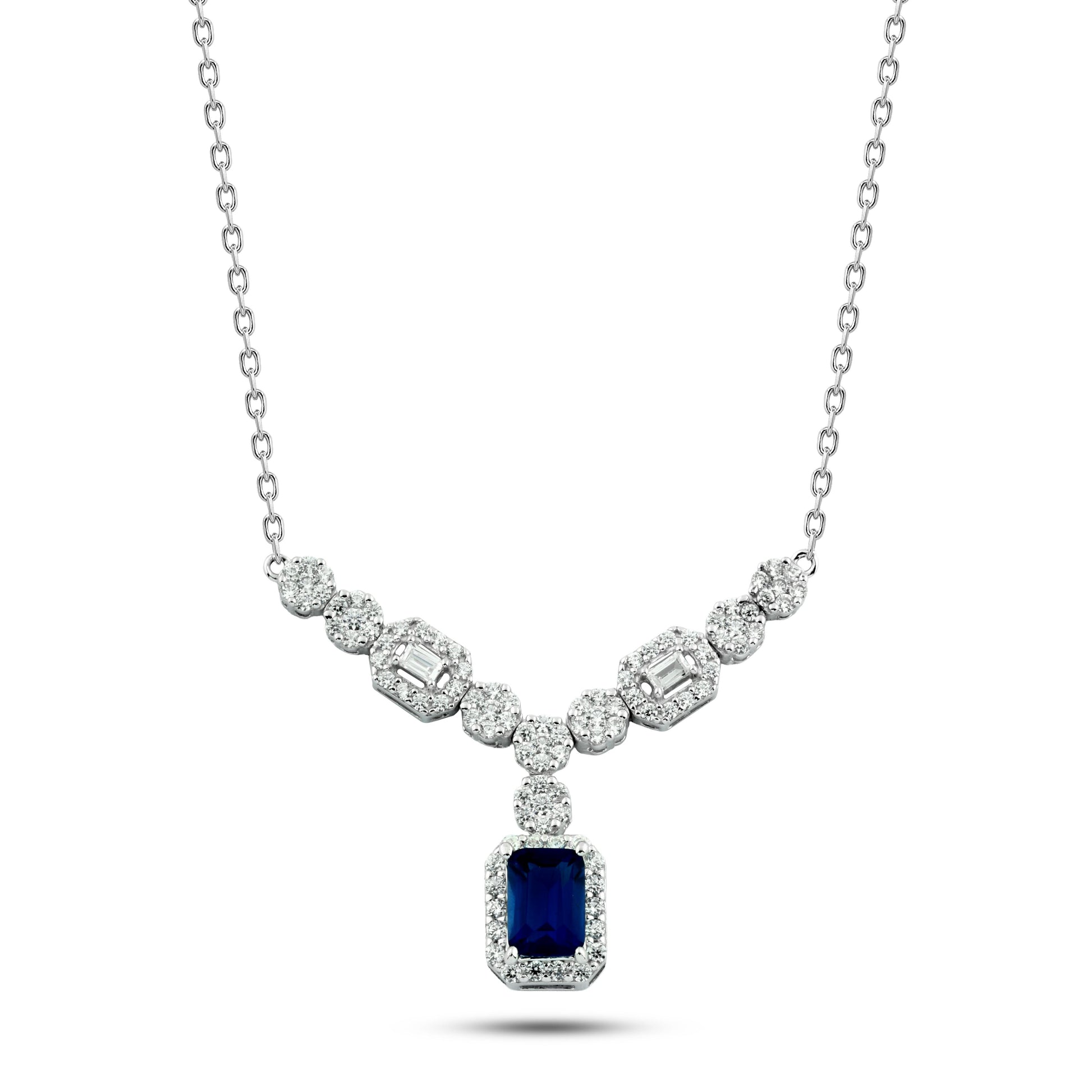 925 Silver Necklace – Royal Blue Stone with Sparkling Setting