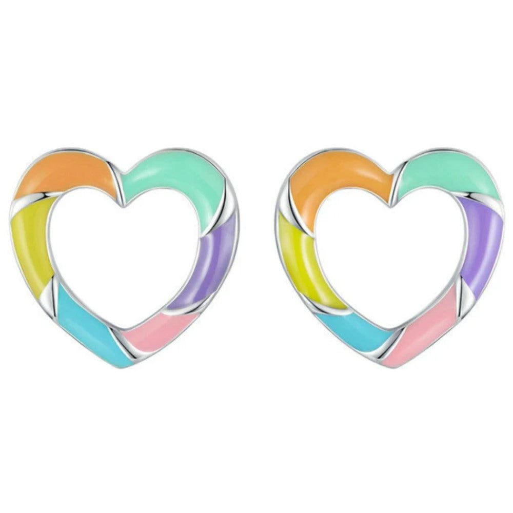 حلق علي شكل قلب ملون فضة عيار 925