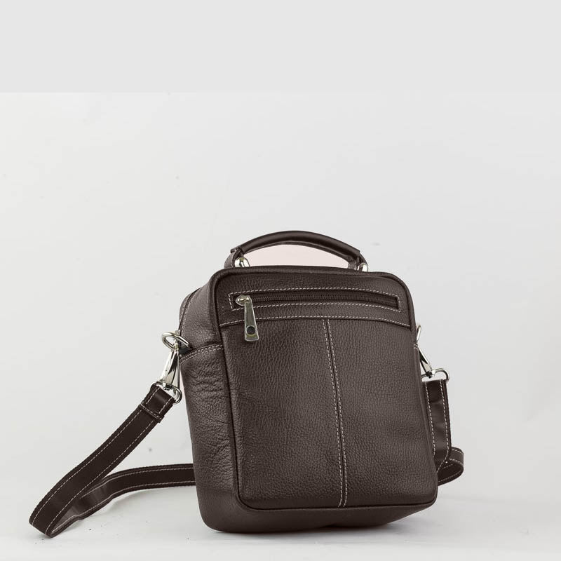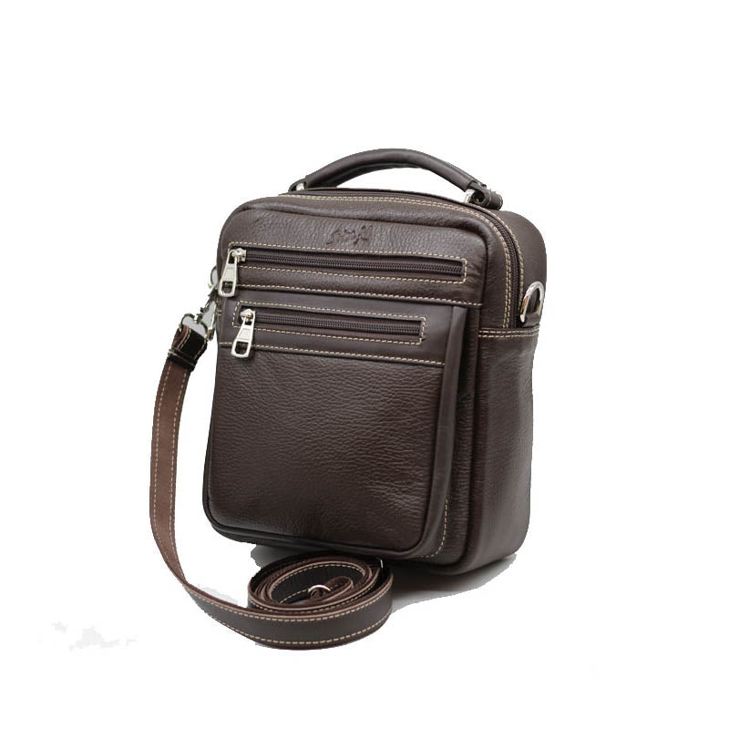 D5086N - شنطة كروس جلد طبيعي بحزام للكتف قابل للفصل, جيبين أمامين,جيب خلفي و يد للرجال من سيفن كيه, بني