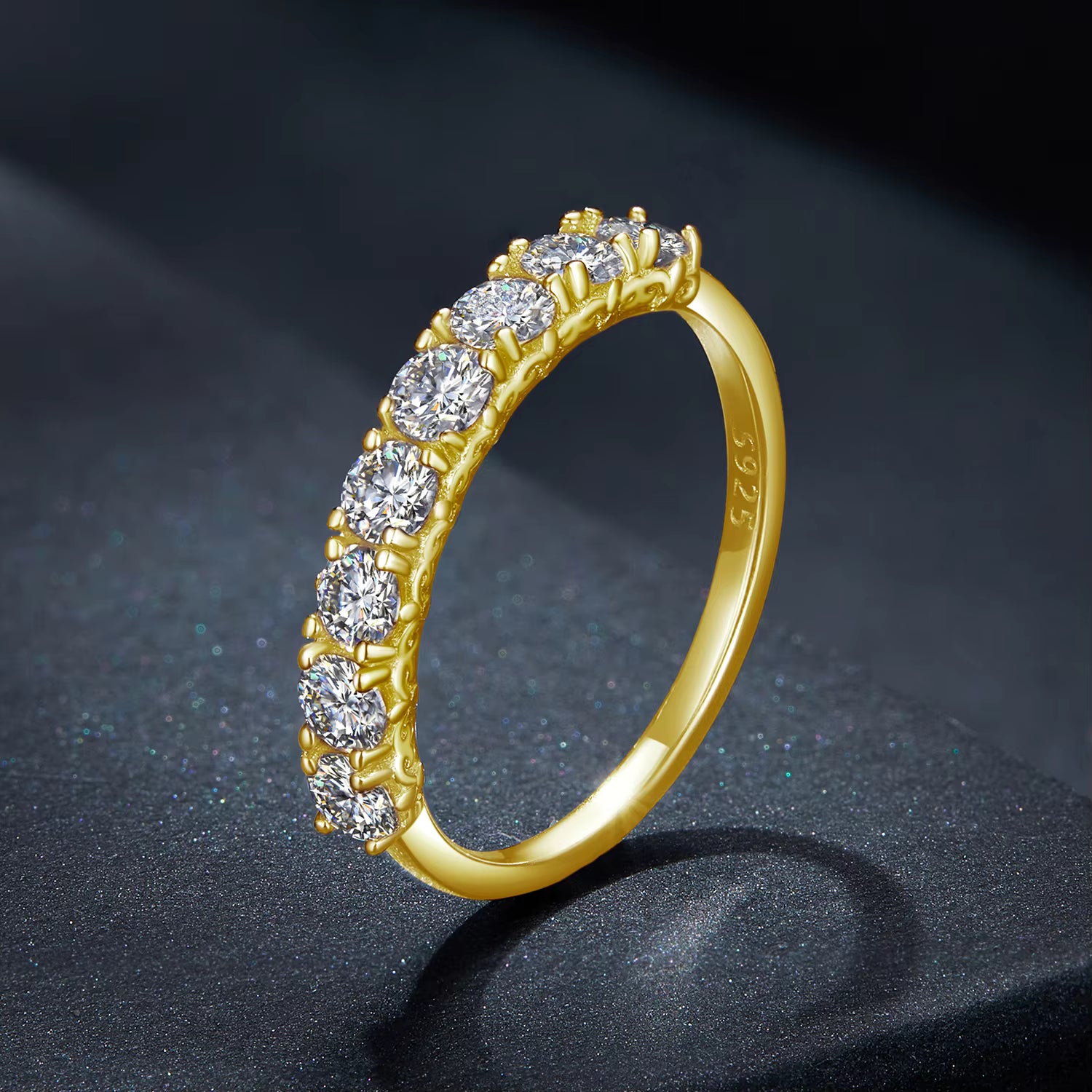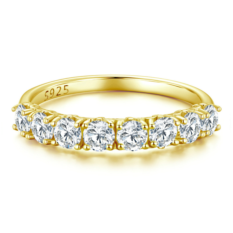 Elegant moissanite ring, gold-plated 925 silver