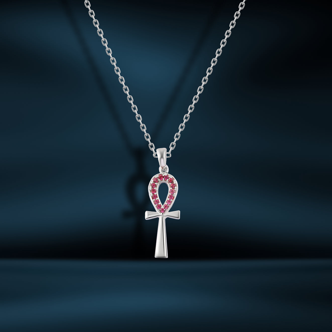 Ankh Necklace with Red Stones – 925 Sterling Silver