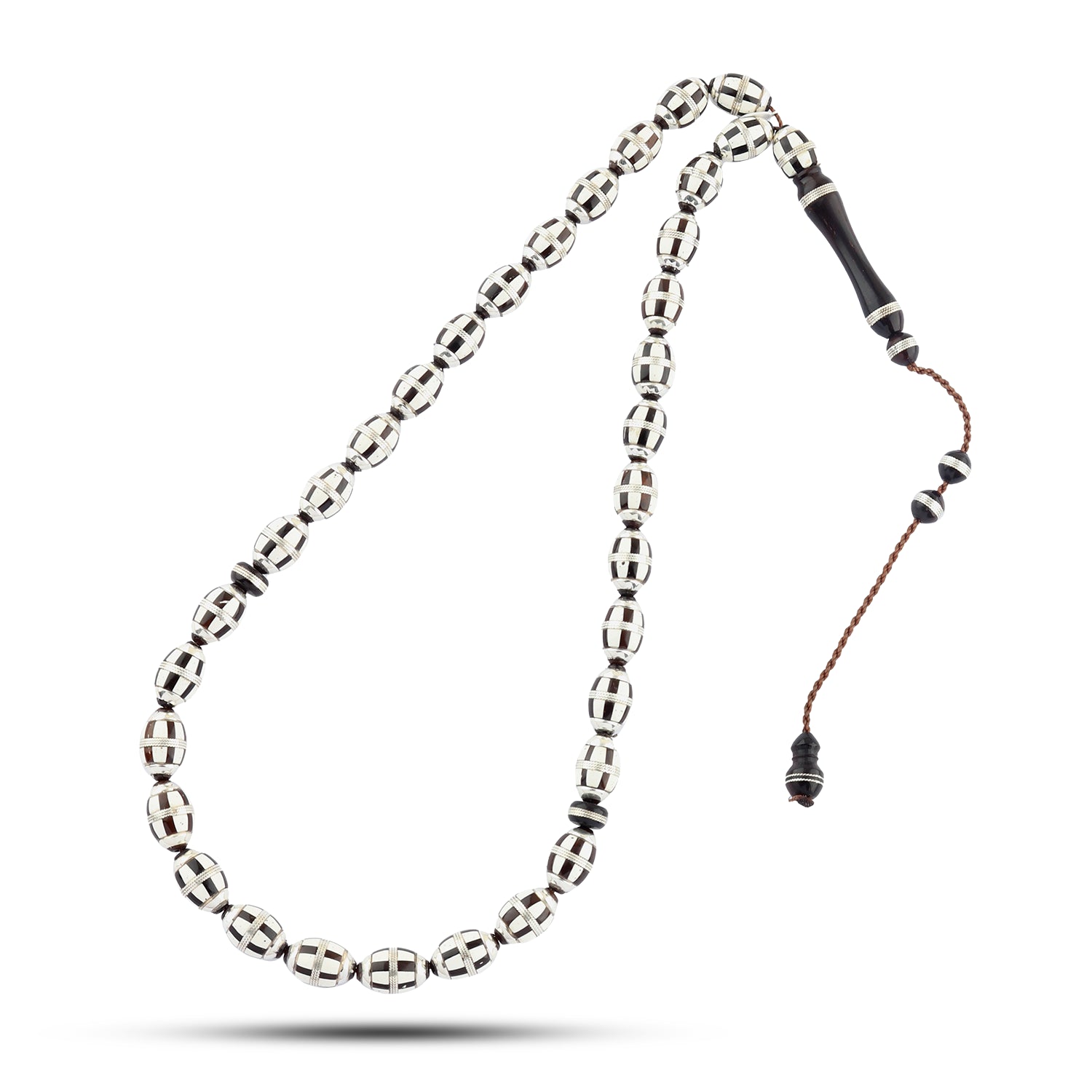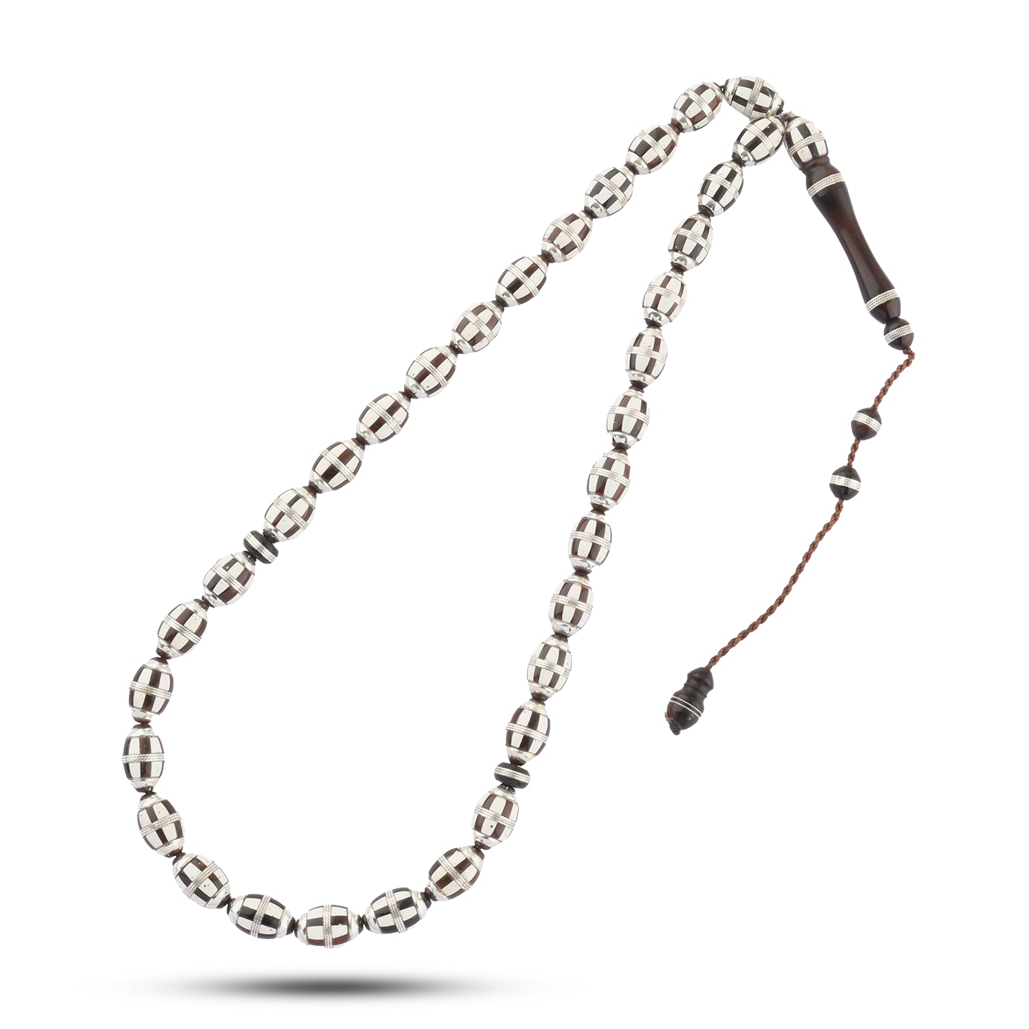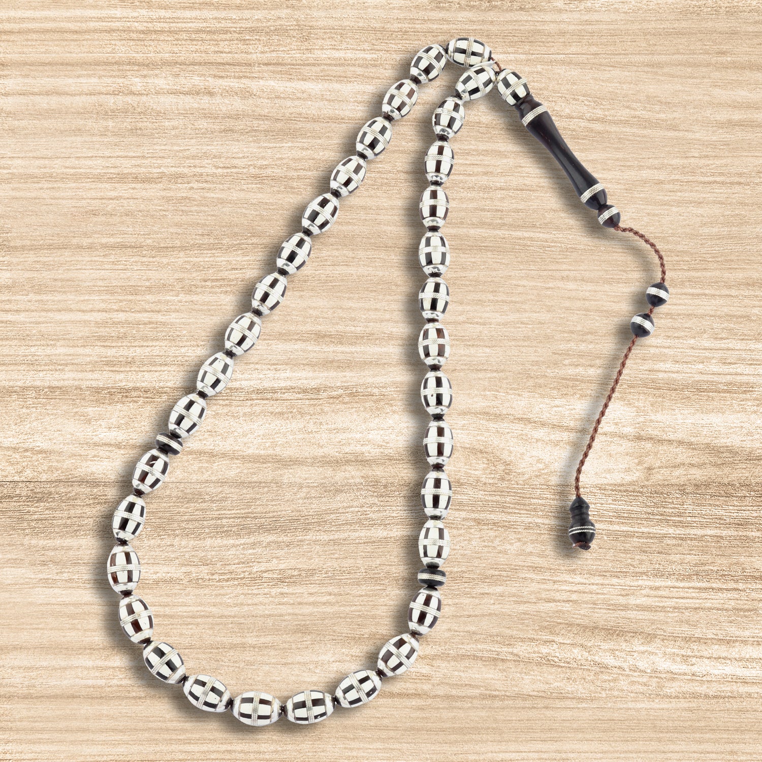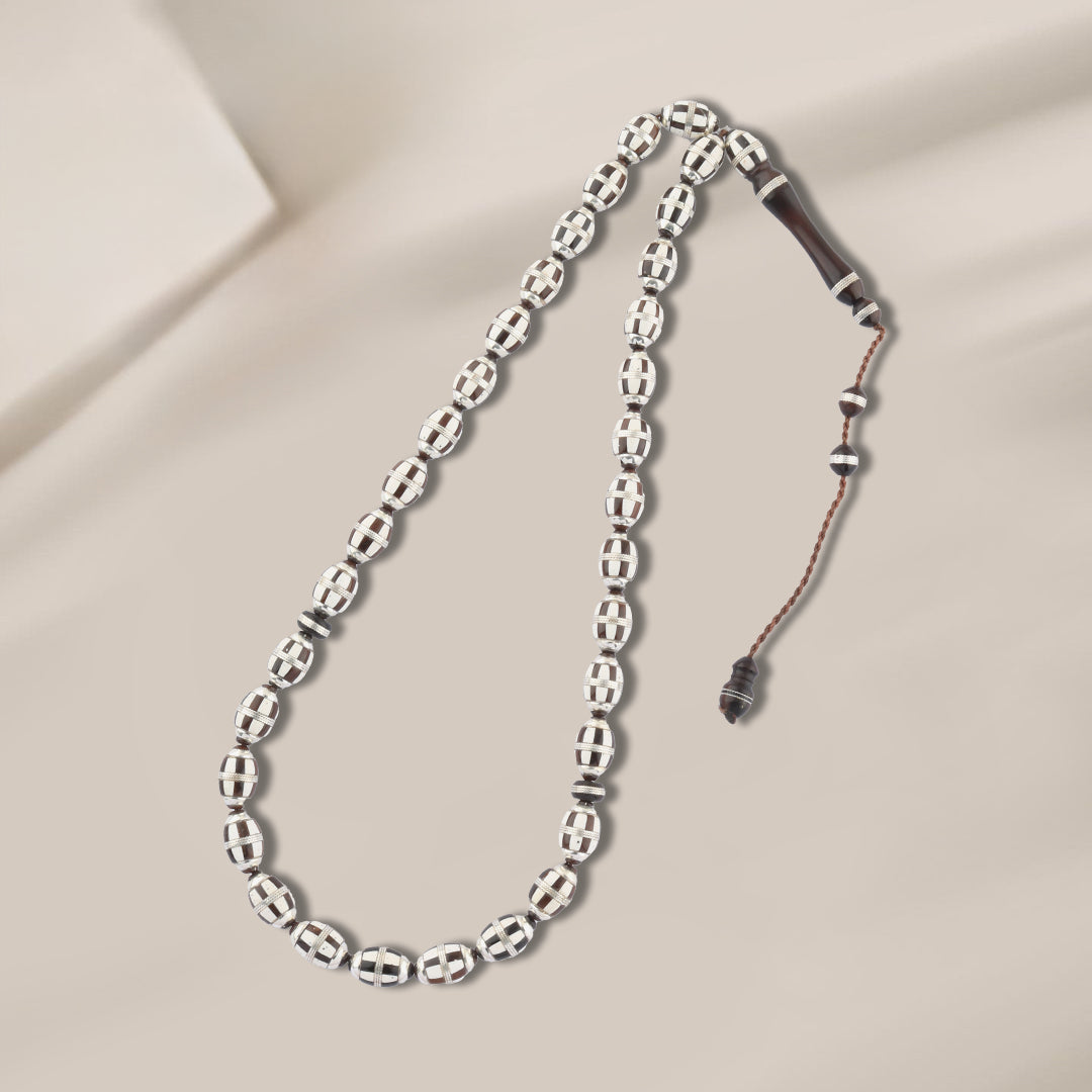 kook Wood Rosary – 33 Beads Inlaid with 999 Silver – Elegant Design
