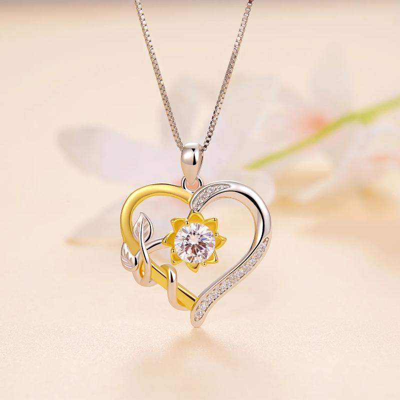عقد فضة عيار 925 علي شكل قلب ملتف حوله وردة