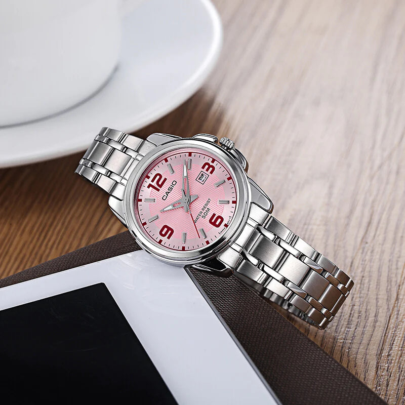 Add this Casio women’s watch with a beautiful brown dial to your collection for a look that never goes out of style.