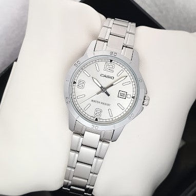 LTP-V004D-7B2UDF – Casio Women’s Analog Watch with Stainless Steel Band and Silver Dial with Date Display