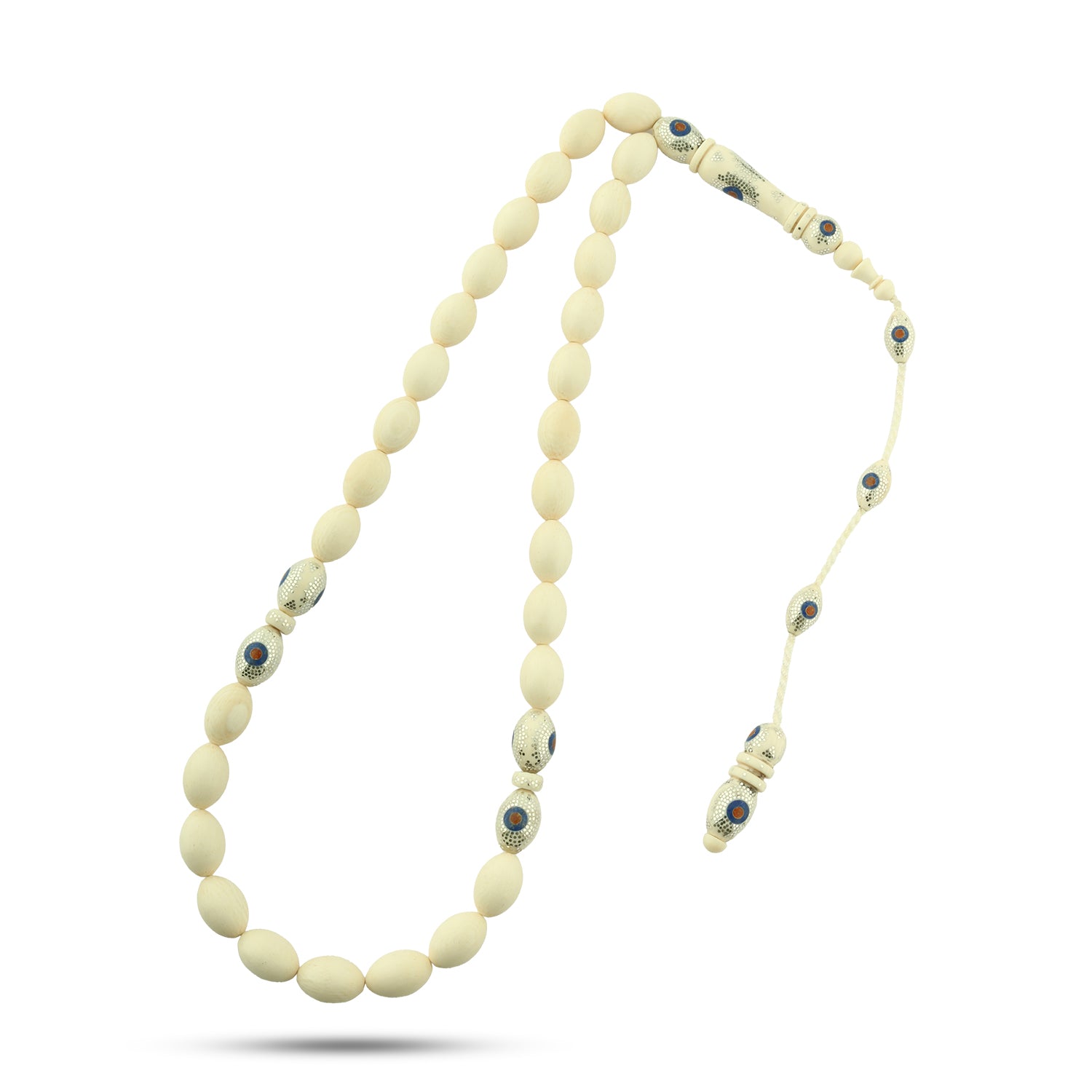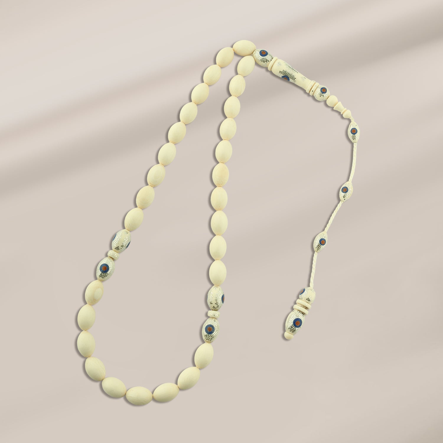 Luxury Olive Natural Ivory (Elephant Tusk) Prayer Beads with 999 Silver, Lapis & Amber – TROS05-50I by Fathy Ibrahim represent a refined piece that perfectly balances classic luxury with elegant color harmony. These Luxury Olive Natural Ivory Prayer Beads feature an elegant olive shape that provides a distinguished presence and comfortable feel, highlighted by a soft natural ivory tone symbolizing authenticity and sophistication.