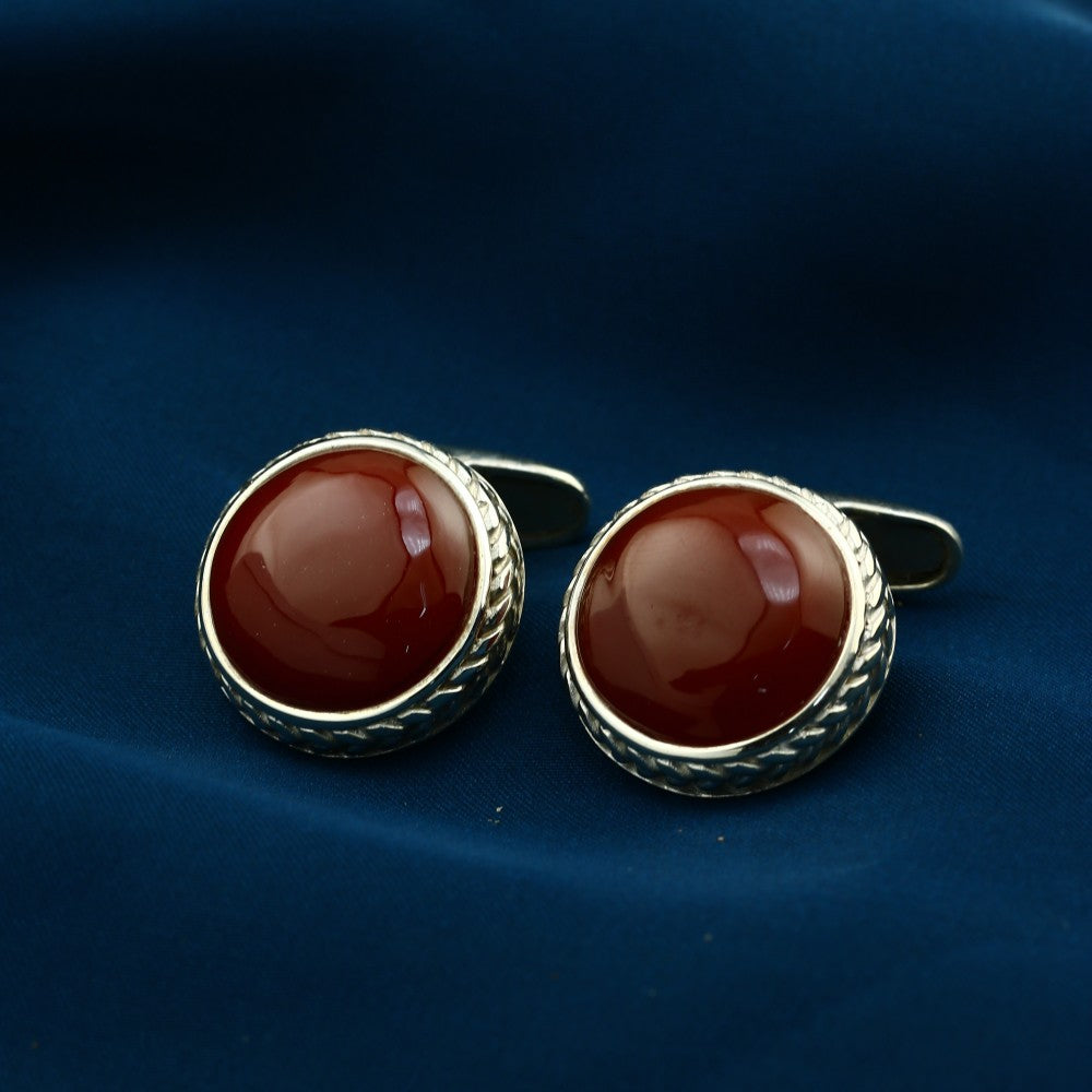 MCUF011-A - زرار بدلة رجالي فضة عيار 925 سادة بحجر من العقيق