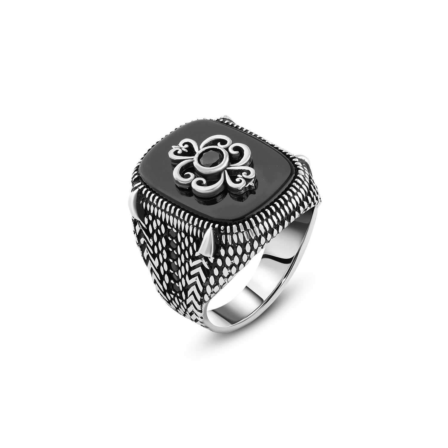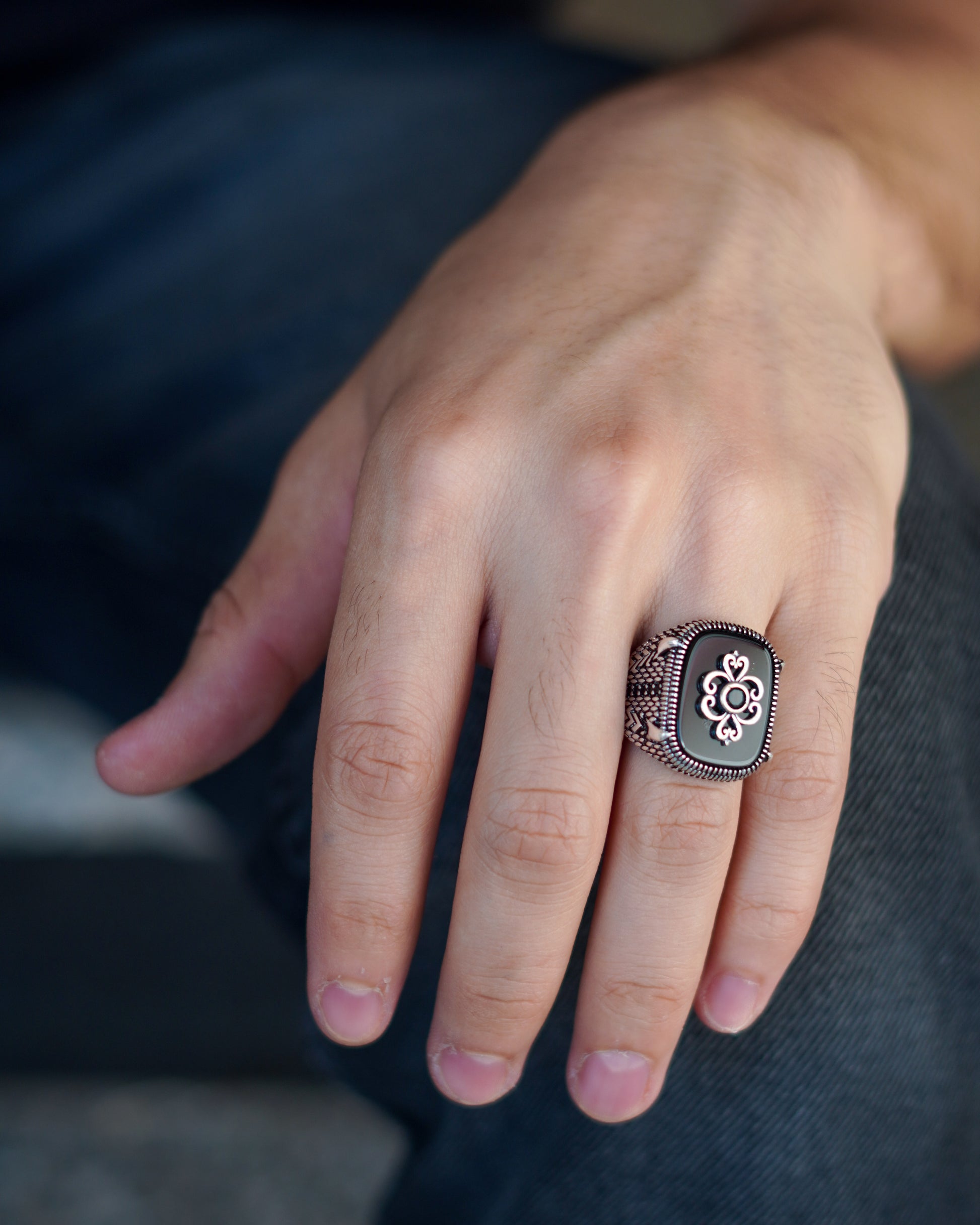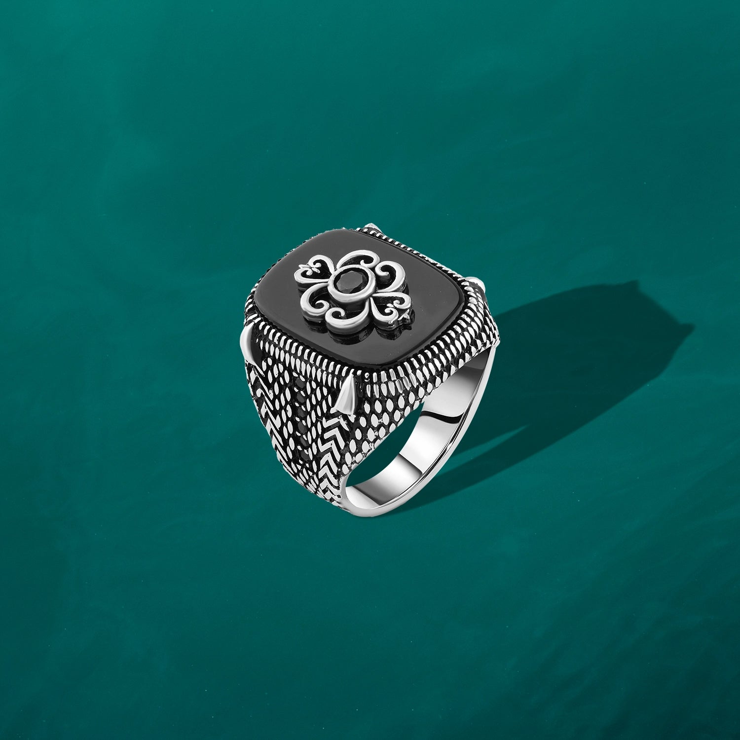 A statement of timeless elegance, this luxury Men’s silver ring features a striking black onyx square design set in bold silver ornamentation, making it the perfect accessory for sophisticated men.