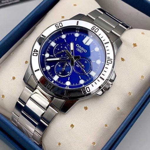 The Casio Stainless Steel Watch is a refined choice for men who value timeless design and reliability. Featuring a striking blue dial watch face and a polished finish, this classic men’s watch is the perfect blend of style and functionality. Whether you're heading to a business meeting or a formal event, this formal analog watch adds elegance to every look—trusted by Fathy Ibrahim.