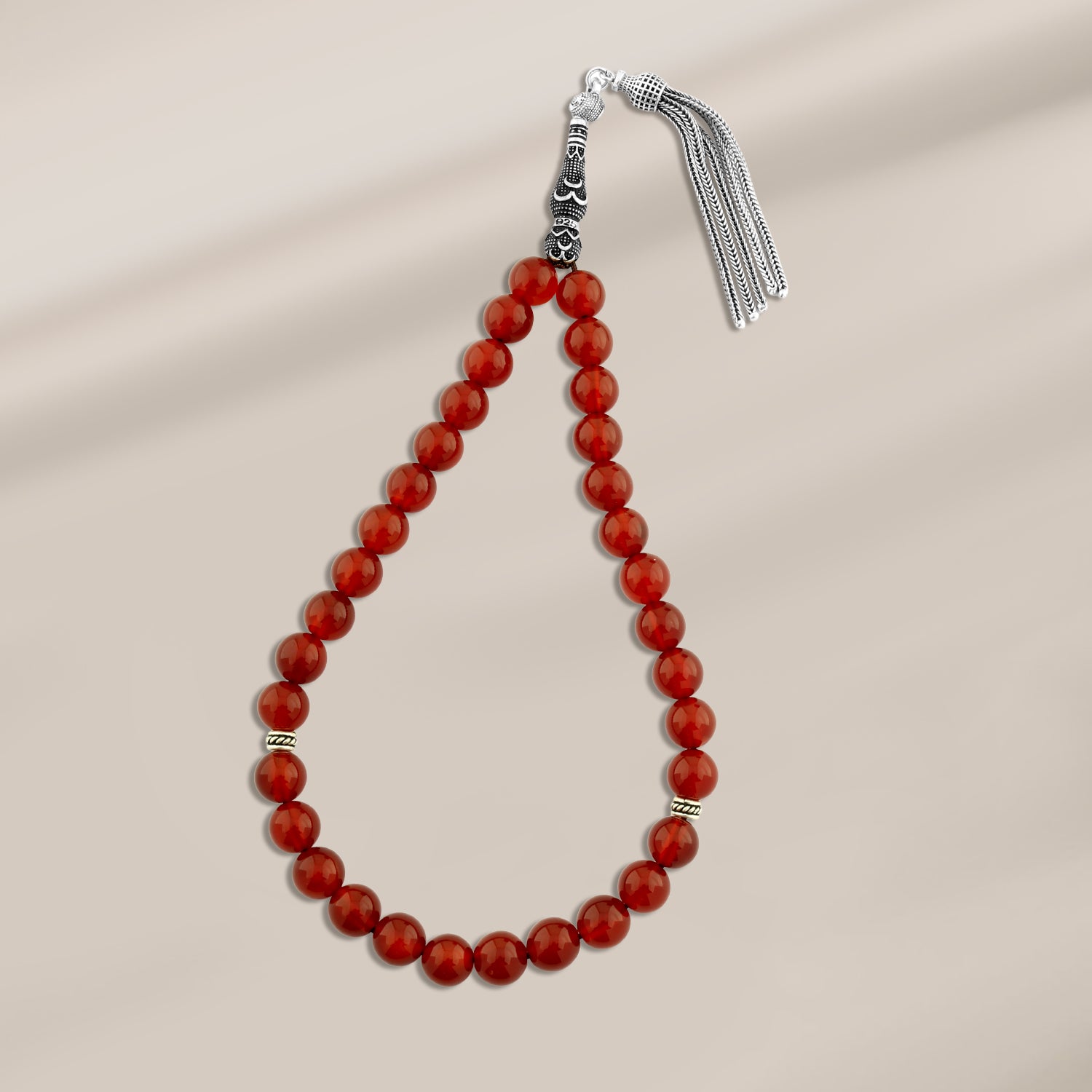 Natural Brown Agate Prayer Beads with Luxurious Turkish 925 Sterling Silver Set – 33 Beads – 8mm
