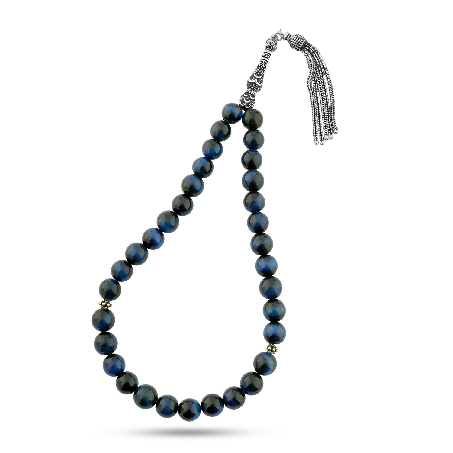 Natural Shazbar Stone Prayer Beads with Luxurious Turkish 925 Silver Set – 33 Beads – 8mm – AROS040
