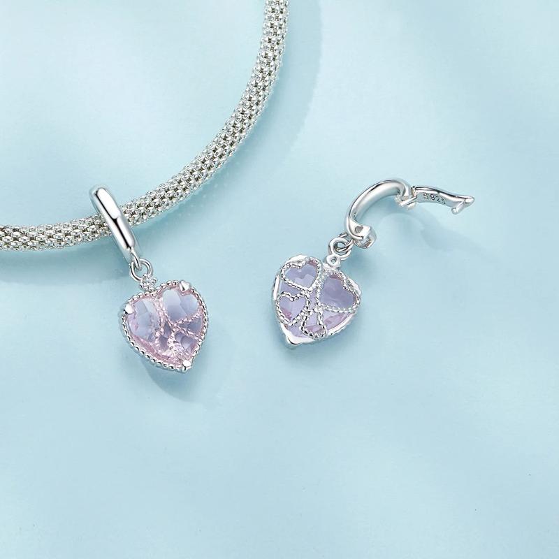 دلاية انسيال قلب وردي معلق بالحب المجوف فضة عيار 925