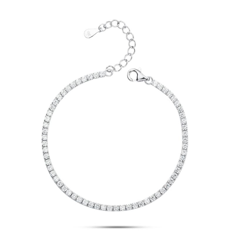 Tennis Bracelet with Shiny Zircon Stones, 925 Sterling Silver