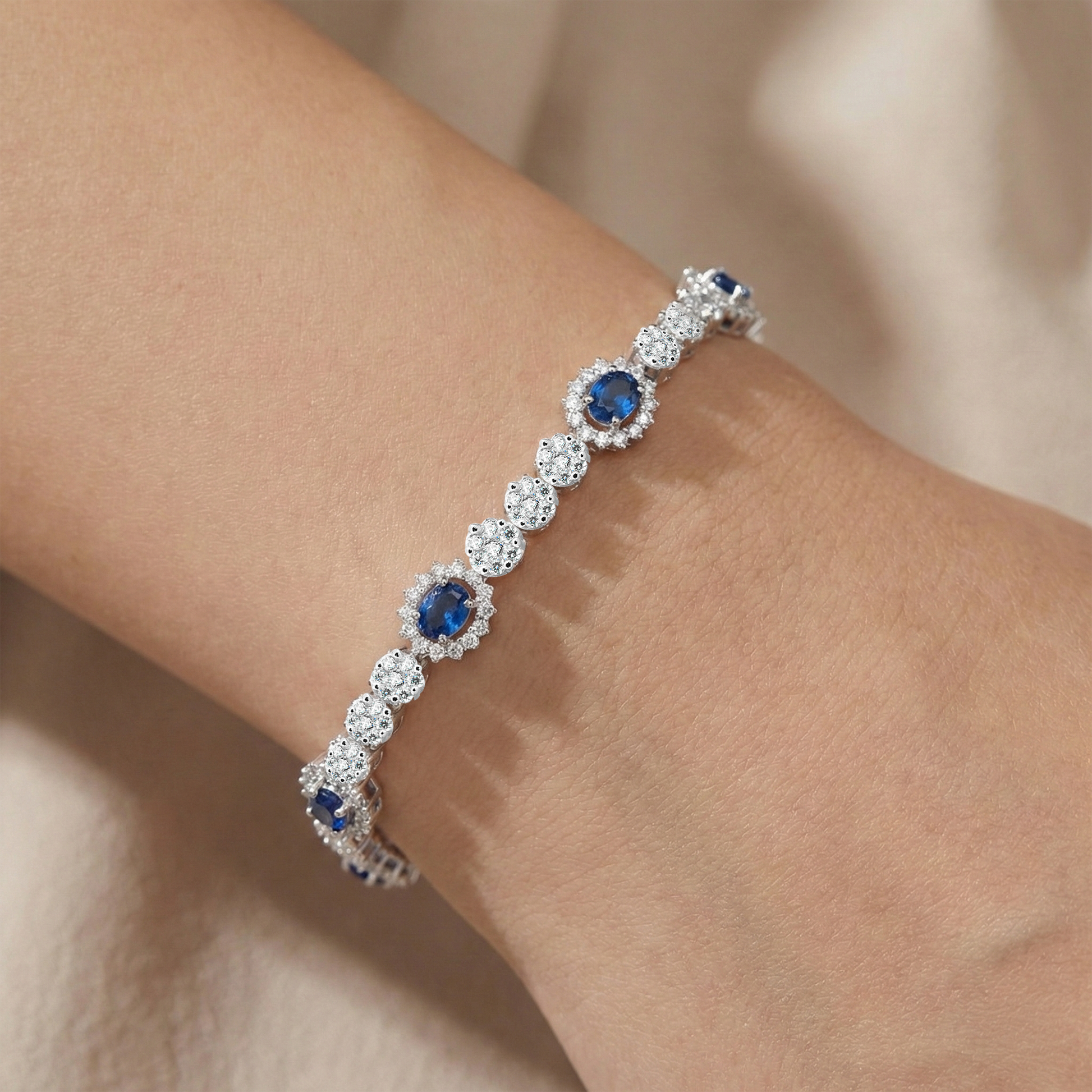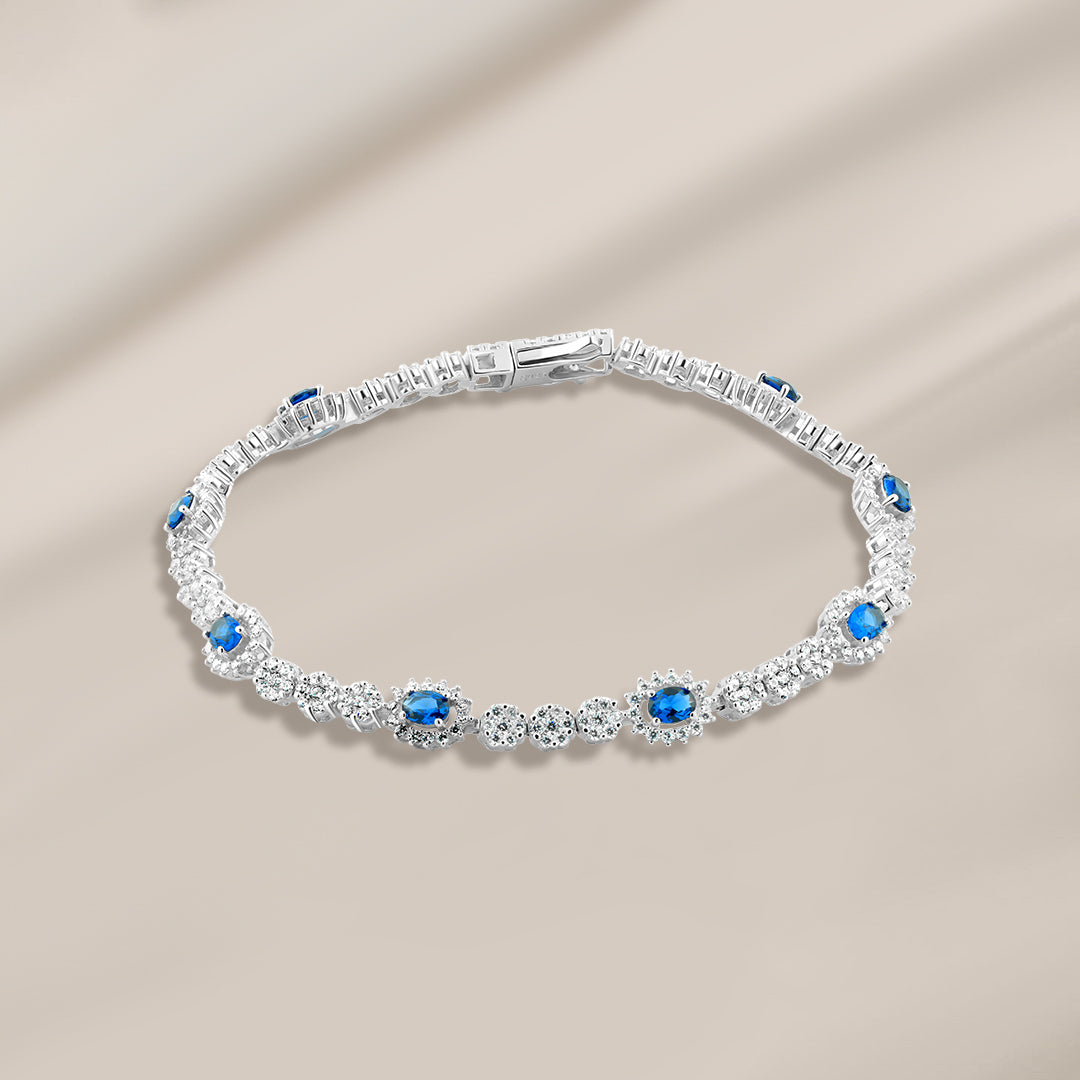انسيال أنيق بفصوص زرقاء بيضاوية مرصّعة فضة عيار 925