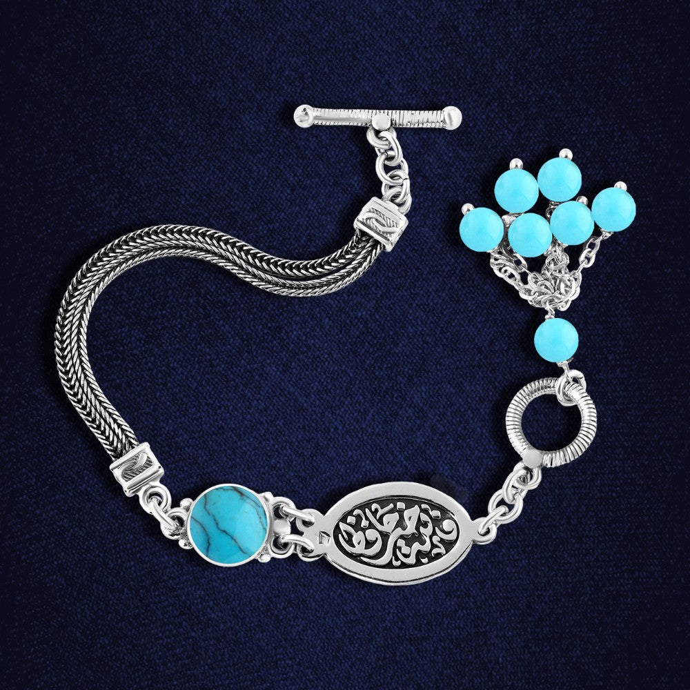 انسيال فضة عيار 925 بتصميم فاخر يجمع بين أصالة الفضة وأناقة حجر الفيروز الطبيعي بلونه الفيروزي الساحر. يزينه نقش لعبارة "وجودك جنة الدنيا" ليعبر عن أرق المشاعر ويجعل منه قطعة مليئة بالمعاني السامية. تم تصميمه بعناية فائقة ليجمع بين الجمال والقيمة الروحية، مما يجعله هدية مثالية تعبّر عن الامتنان والحب، أو قطعة فاخرة تضيف لمسة مميزة لإطلالتك اليومية أو في المناسبات الخاصة.