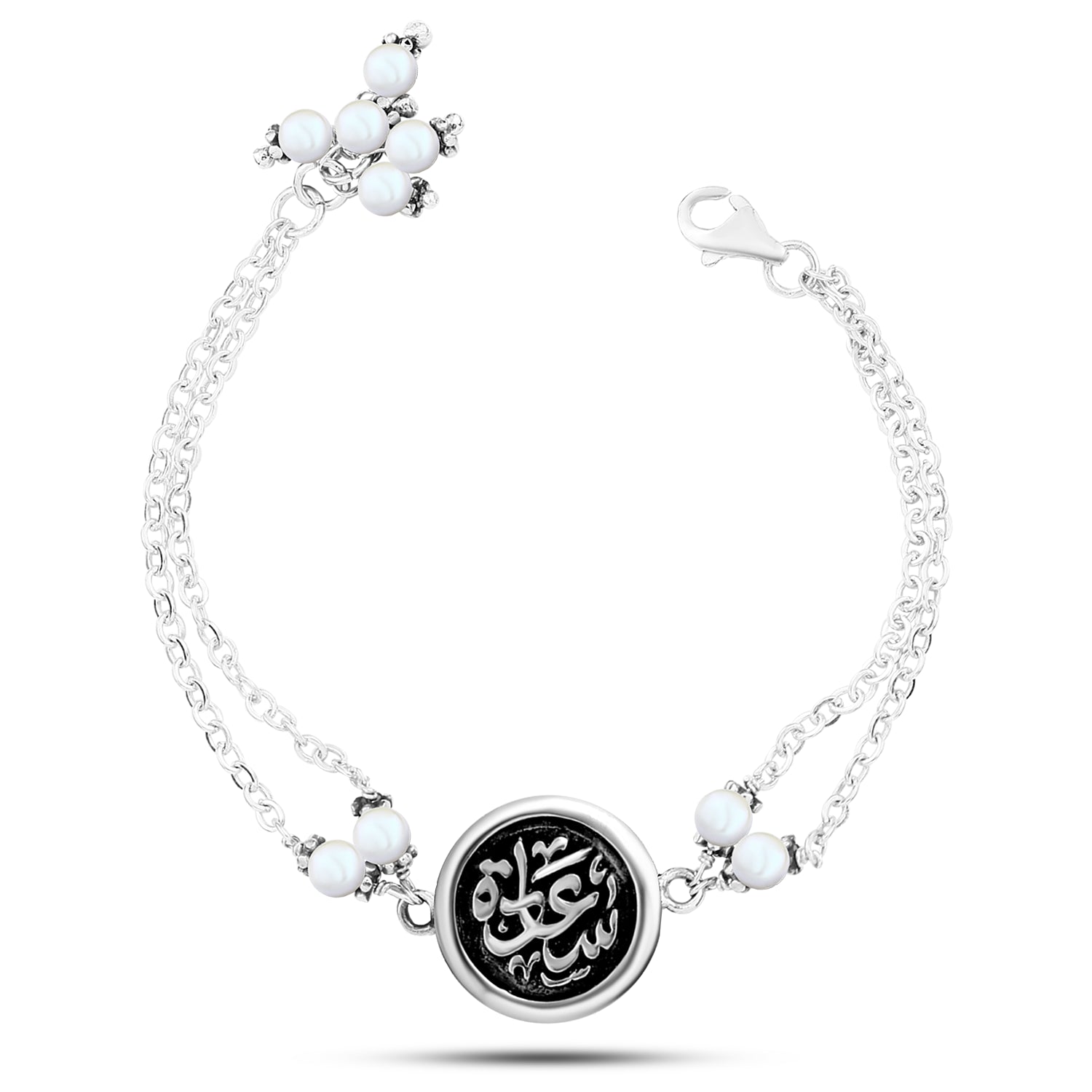 اقتني الآن انسيال فضة سعادة مزين بحبات لؤلؤ من فتحي إبراهيم