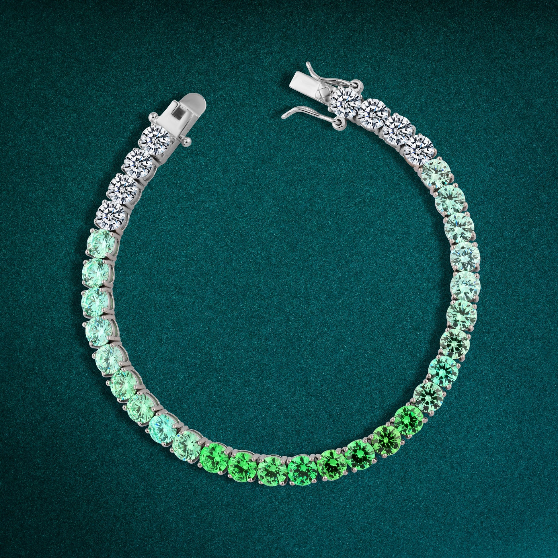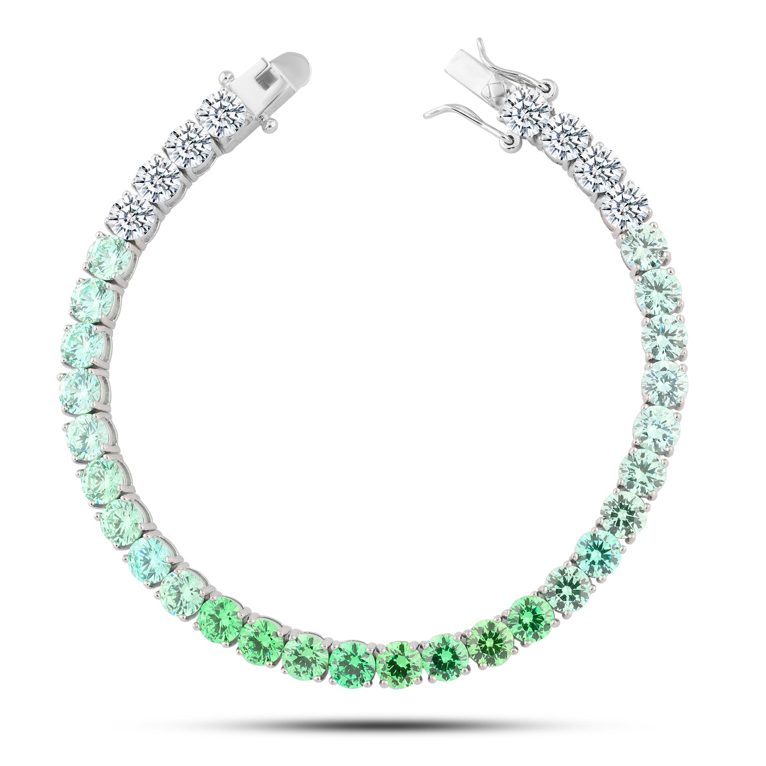 ارتقي بإطلالتك مع انسيال فضة عيار 925 لامع بتصميم فاخر مرصّع بأحجار الزركون الأخضر اللامعة التي تضيف لمسة من التميّز والجاذبية إلى معصمك.