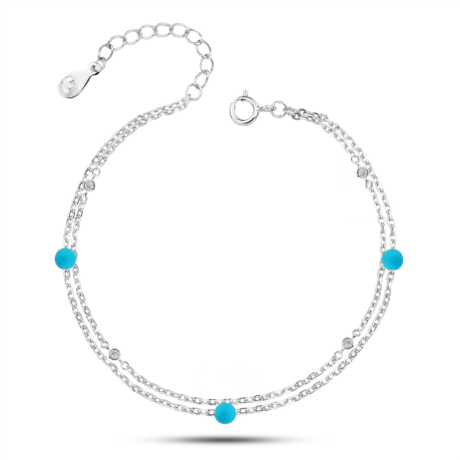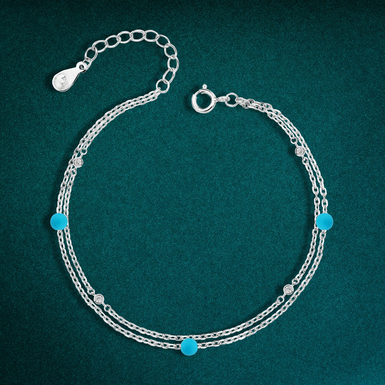 انسيال مزدوج السلسلة بحجر فيروزي أنيق فضة عيار 925