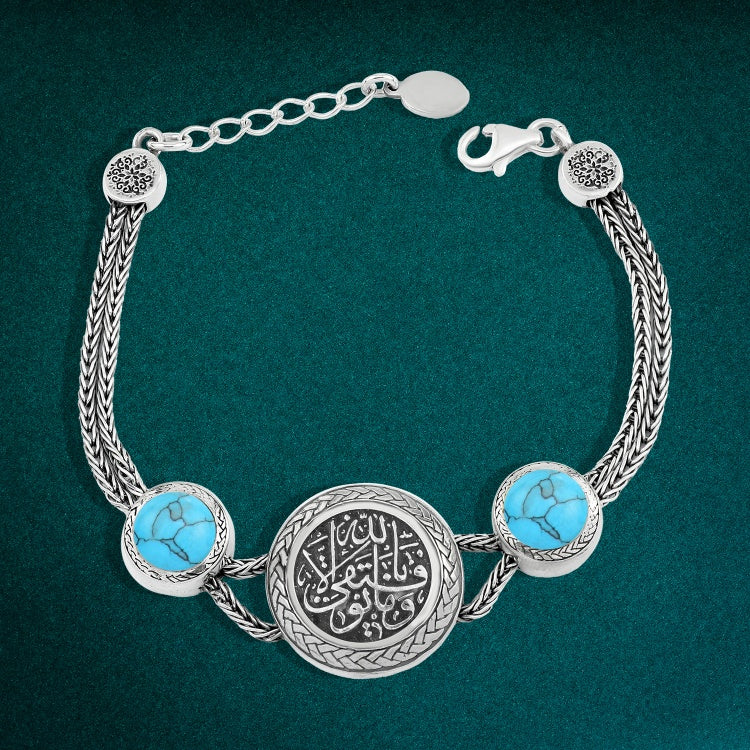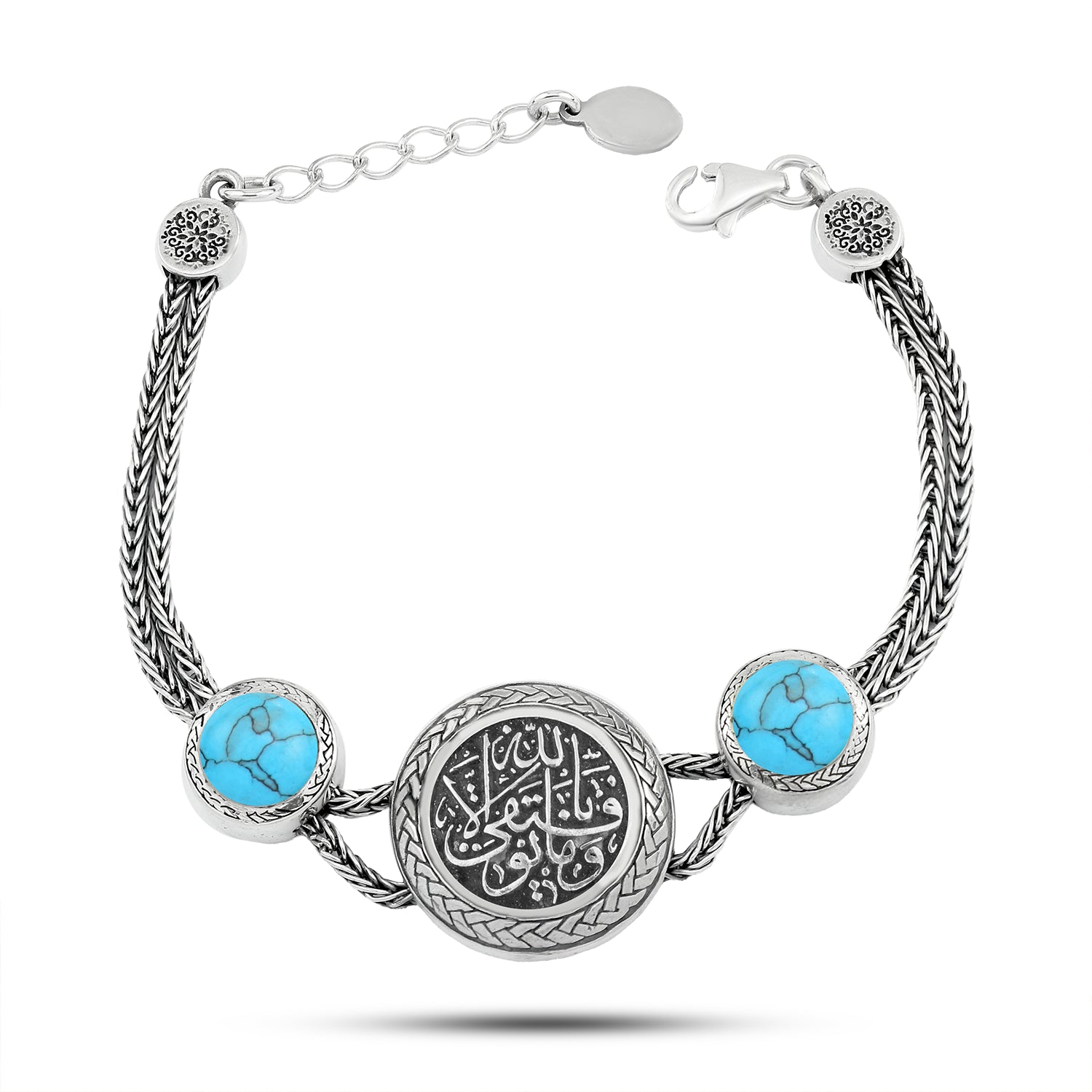 انسيال "وما توفيقي إلا بالله" فضة عيار 925 مزين بحجر فيروز طبيعي