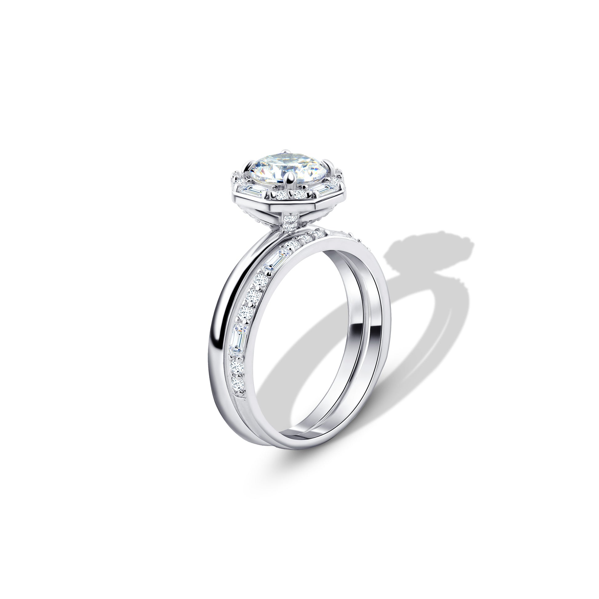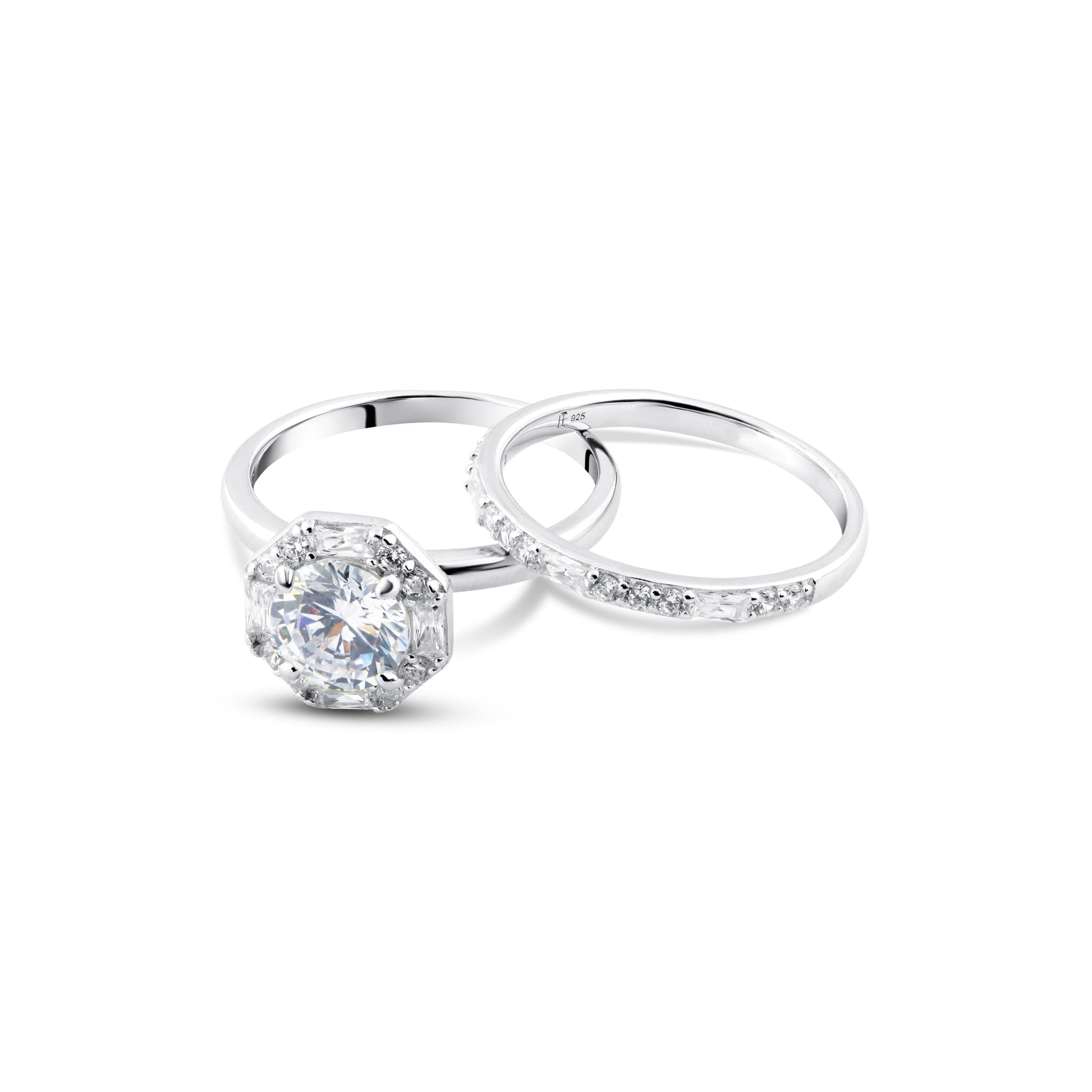 توينز فضة 925 بحجر زركون لامع مع خاتم مرصع بالزركون