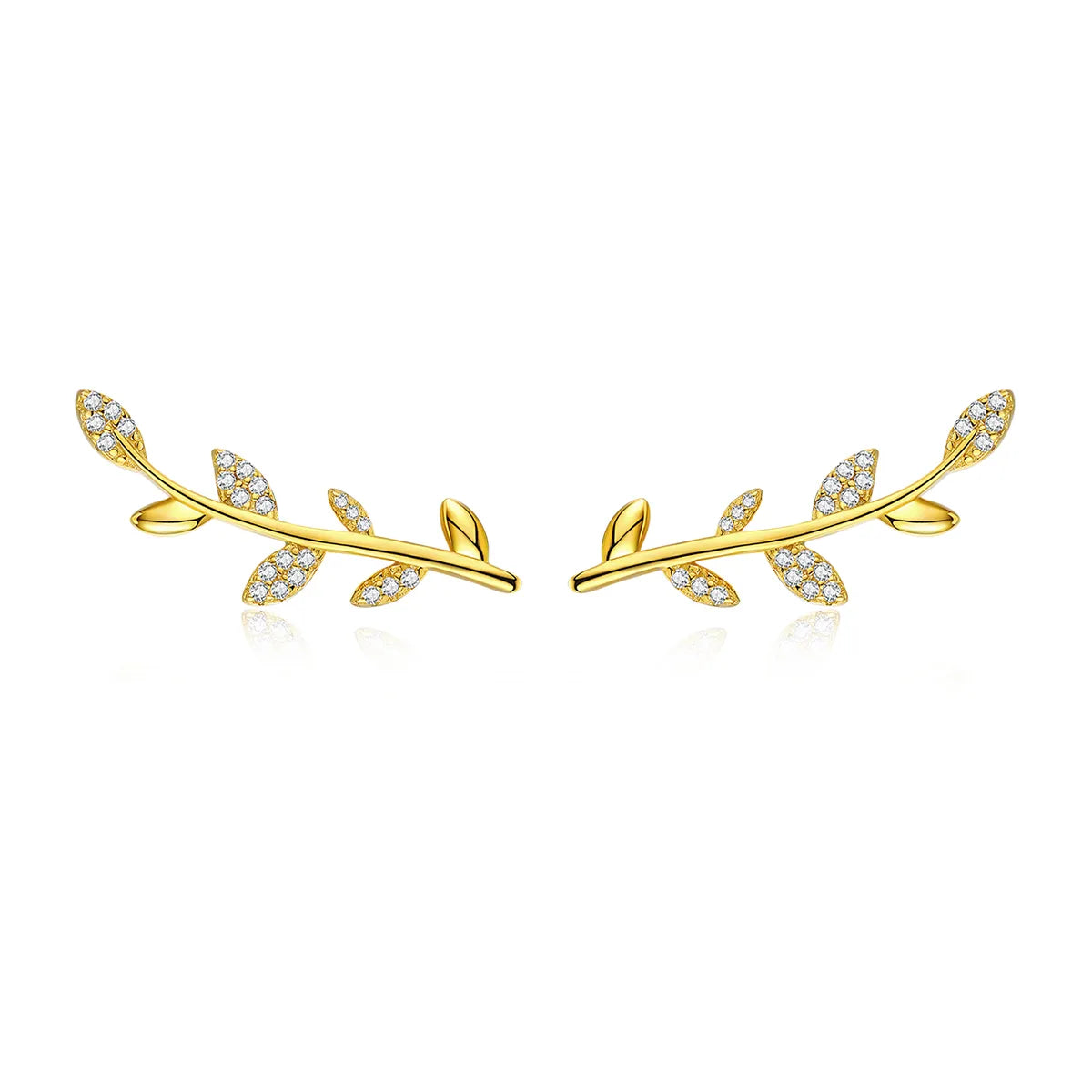 حلق أوراق لامعة فضة عيار 925 - مطلي ذهب