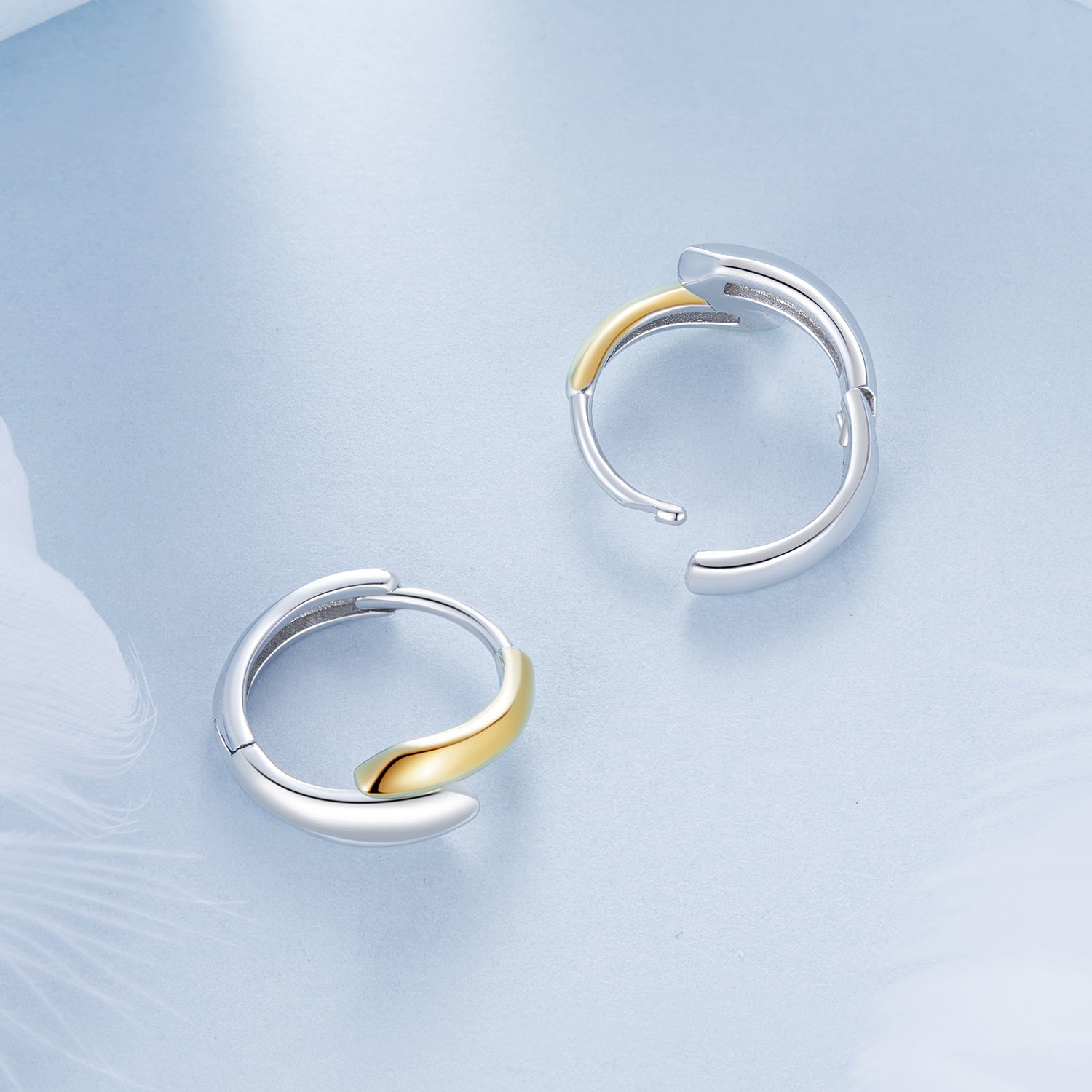حلق فضة عيار 925 بتصميم ثنائي اللون ذهبي وفضي