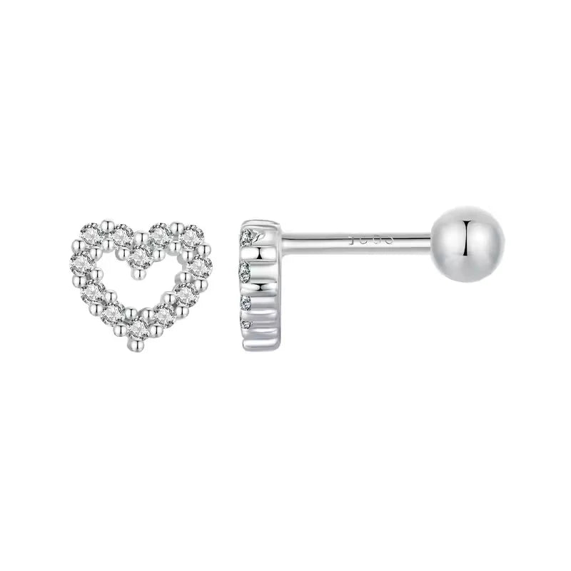 يتميّز الحلق بتصميم قلب صغير أنيق مرصع بفصوص زركون شفافة متلألئة تضيف لمسة ناعمة من الفخامة والرقي، مما يجعله مثاليًا للاستخدام اليومي أو كهدية تعبّر عن المشاعر الجميلة.