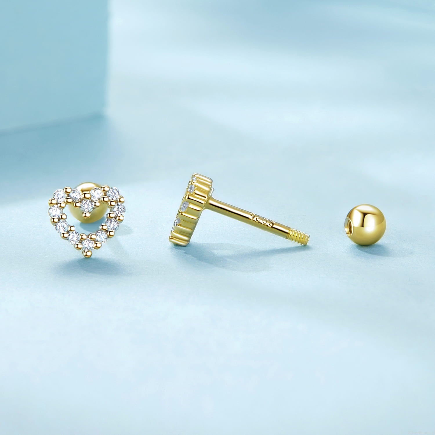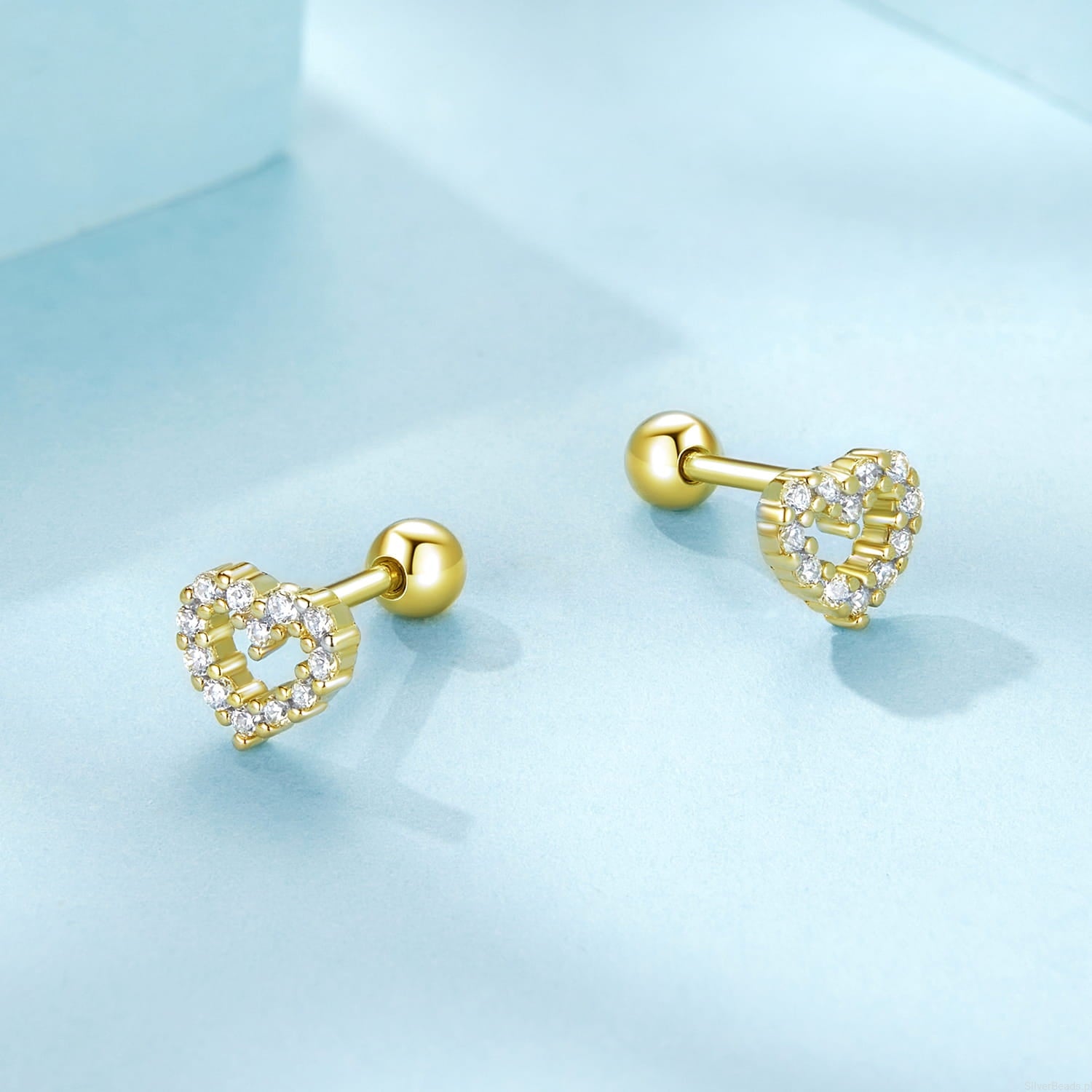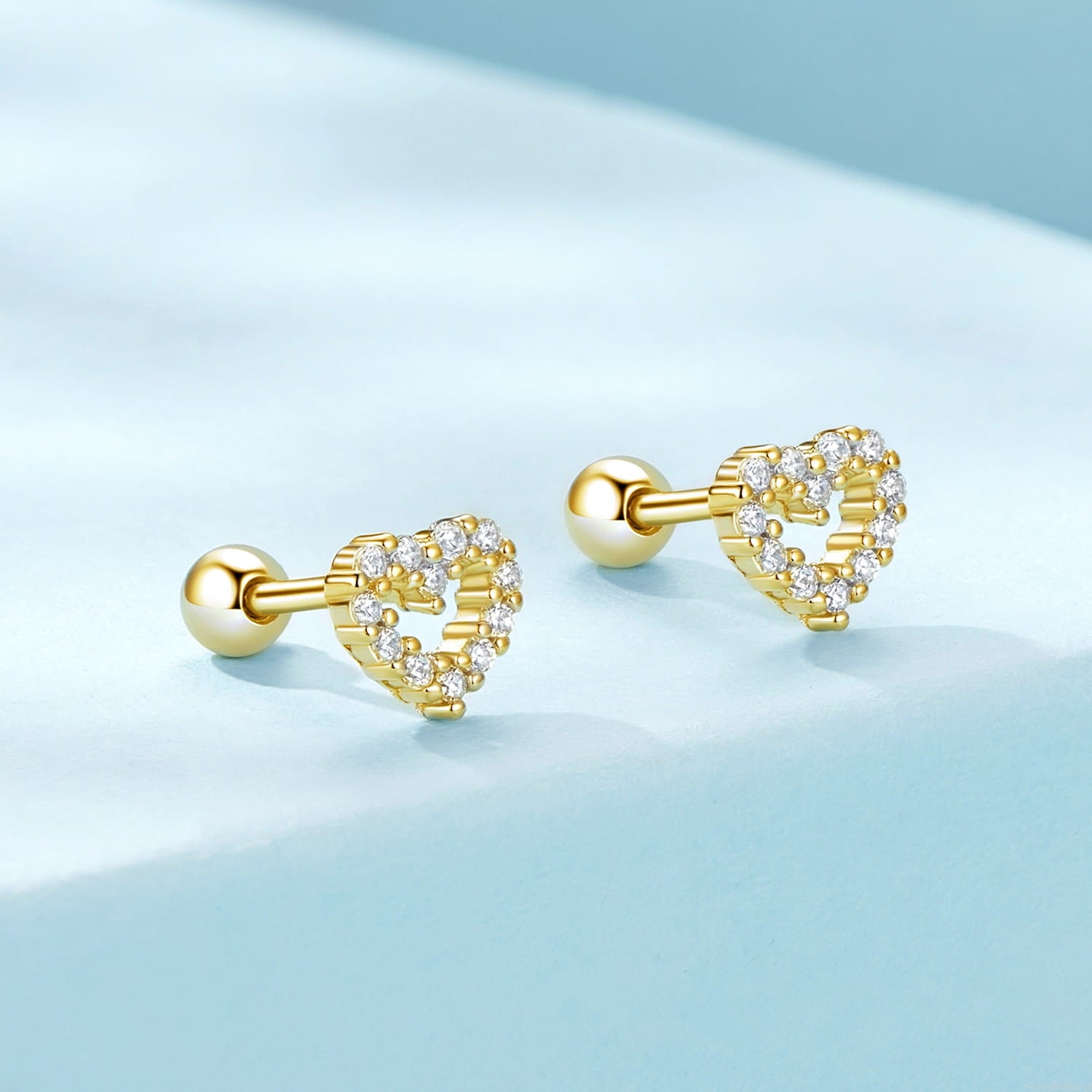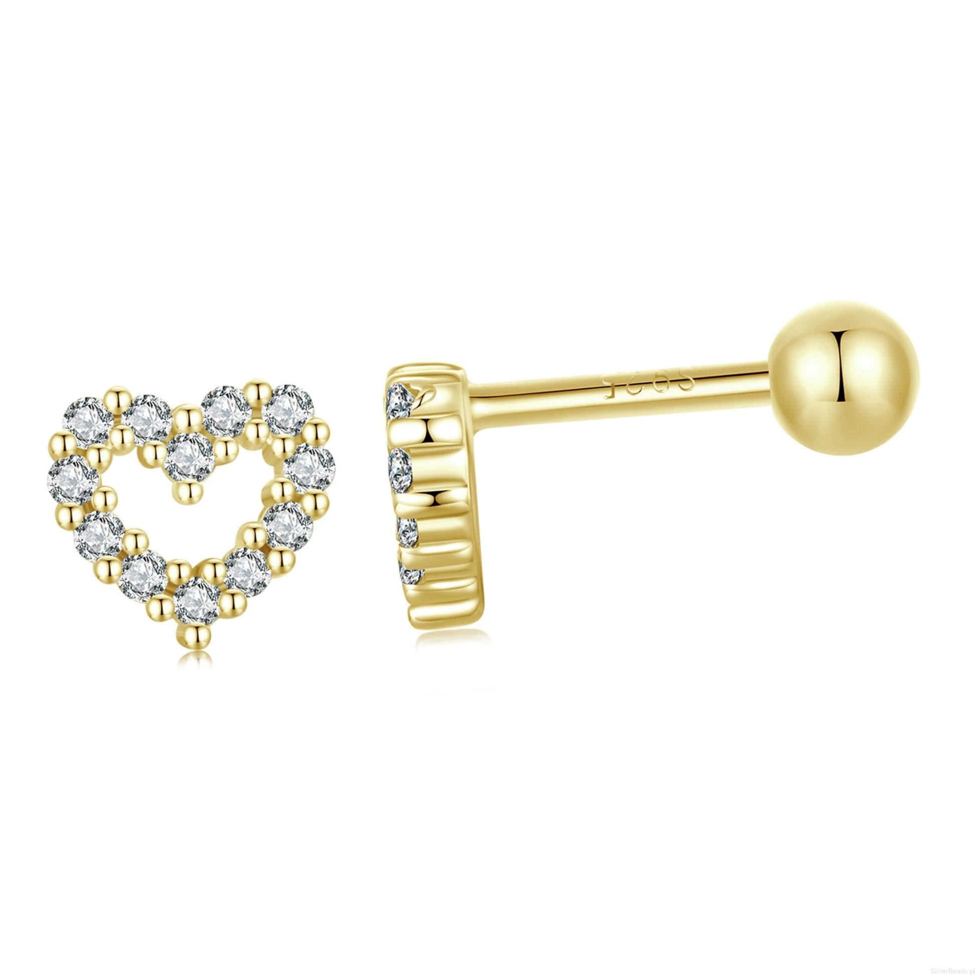حلق فضة عيار 925 بتصميم قلب مرصع بزركون - مطلي ذهب