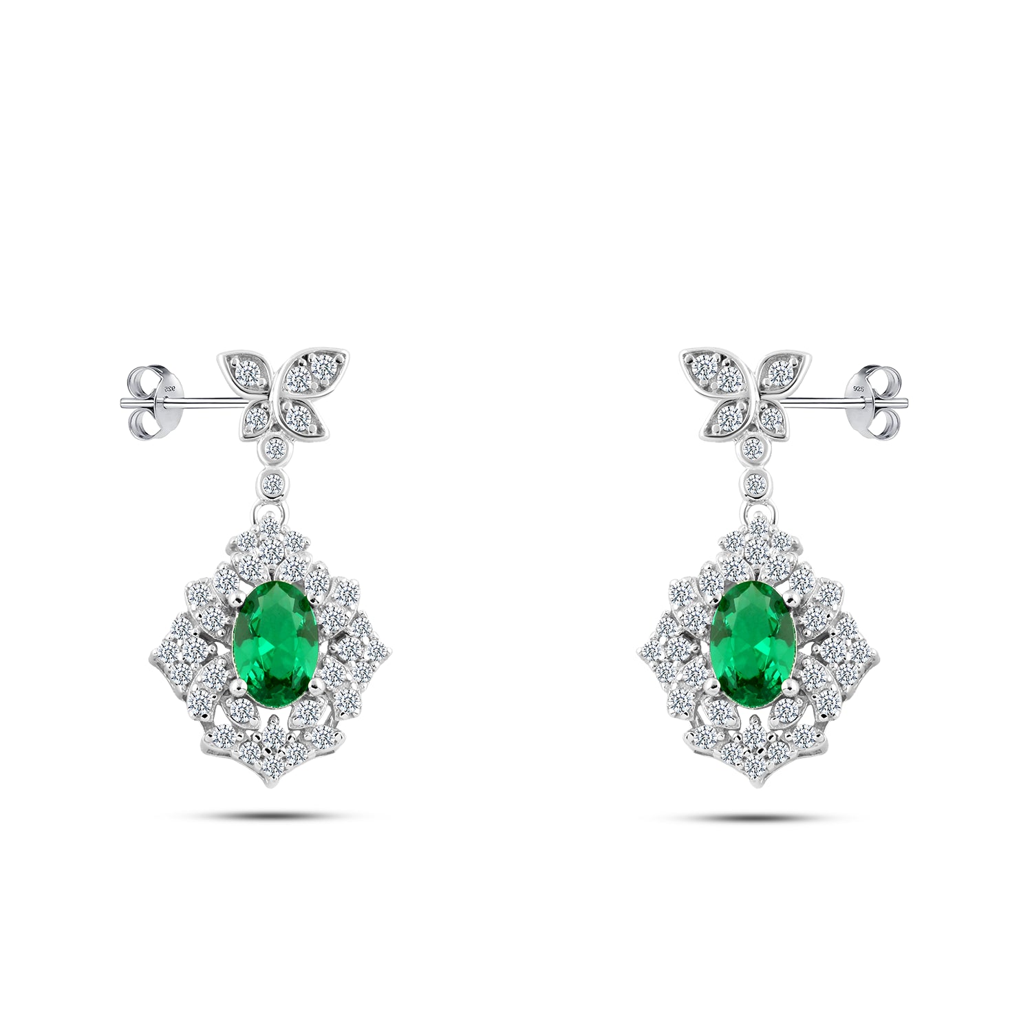 حلق فضة عيار 925 بفص زركون أخضر ملكي