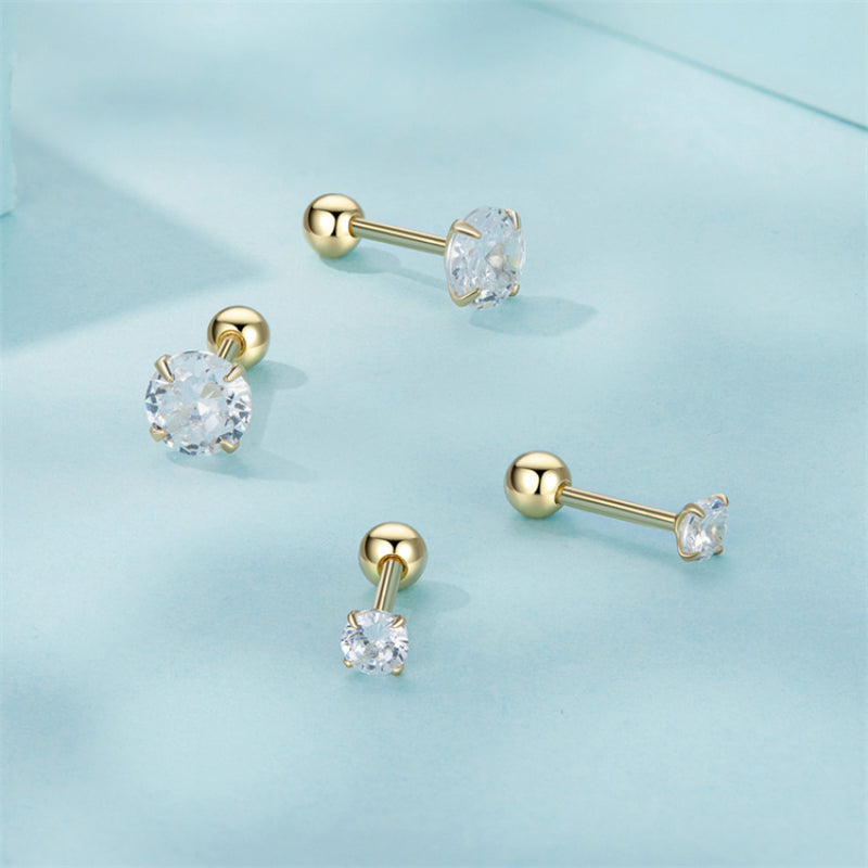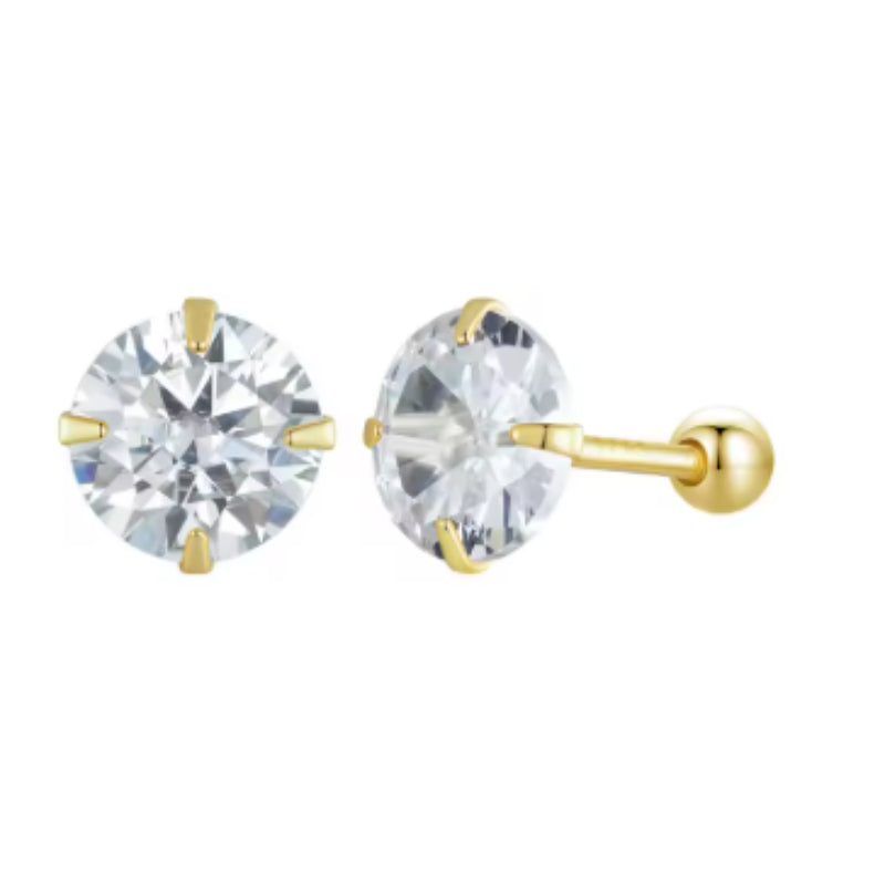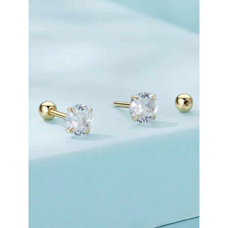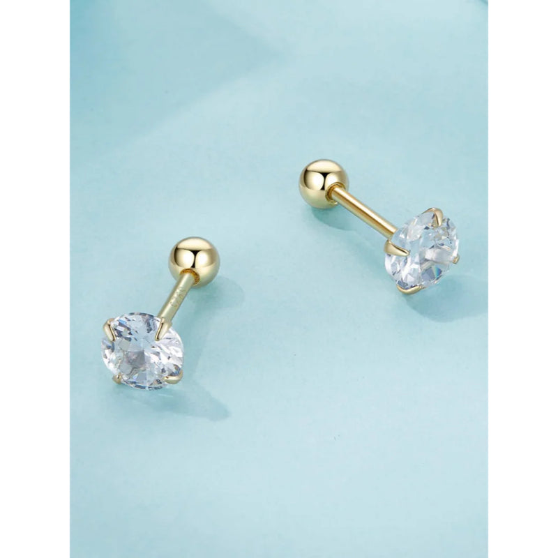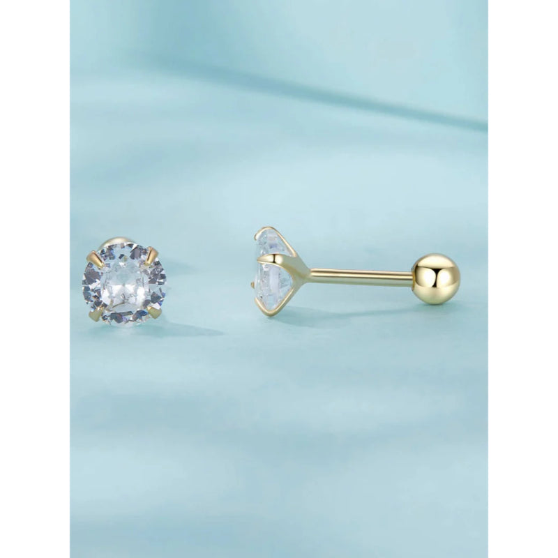 حلق فضة عيار 925 مطلي ذهب بفص زركون شفاف