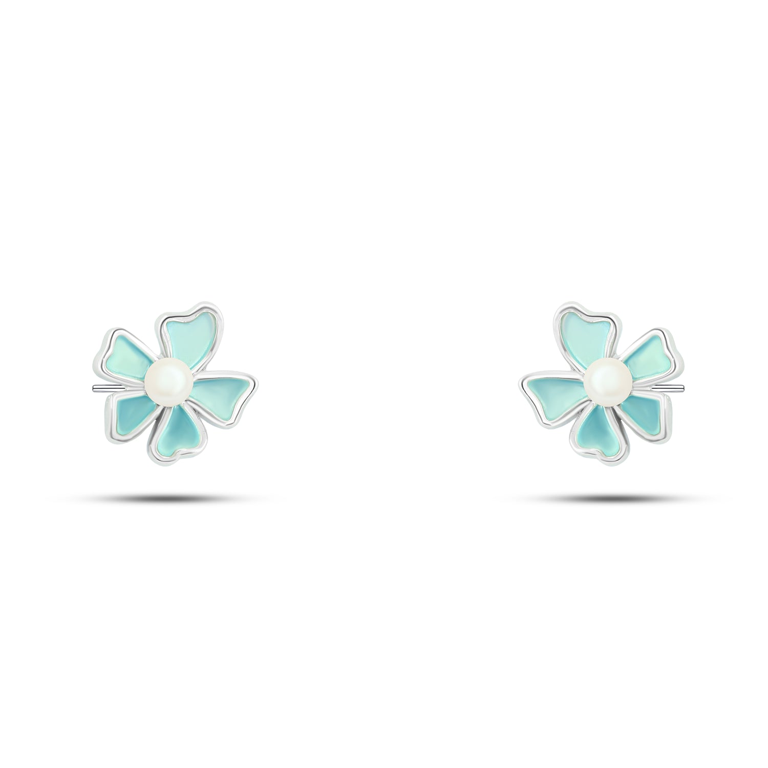 حلق فضة وردة أنيقة بلمسة لؤلؤ – عيار 925