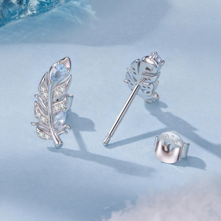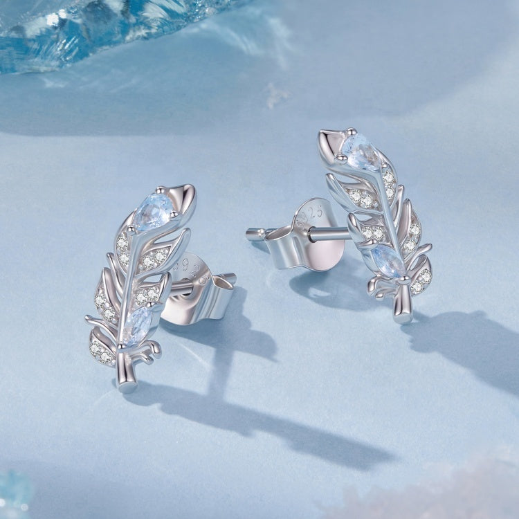 حلق فضة 925 ريشة بفص أزرق لامع