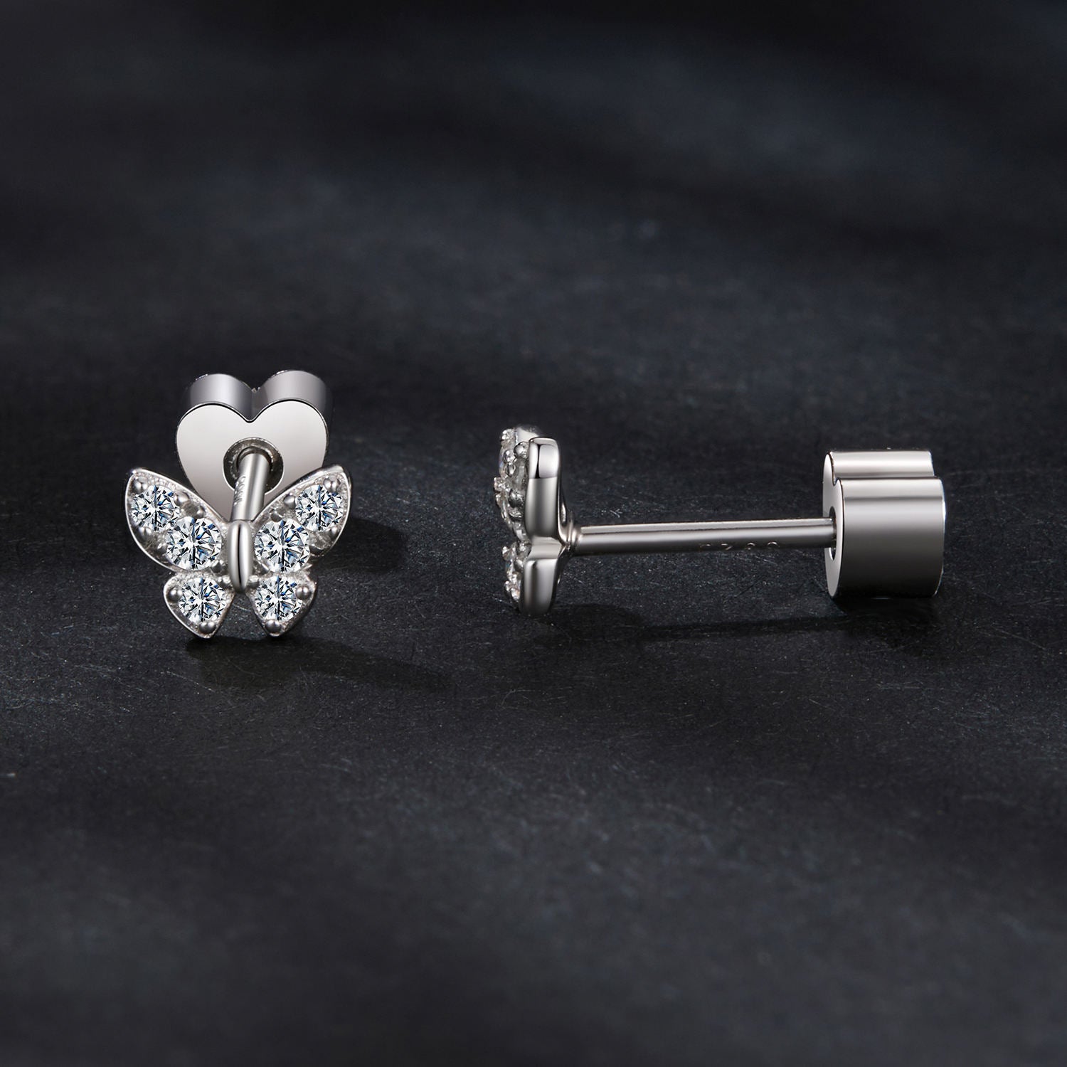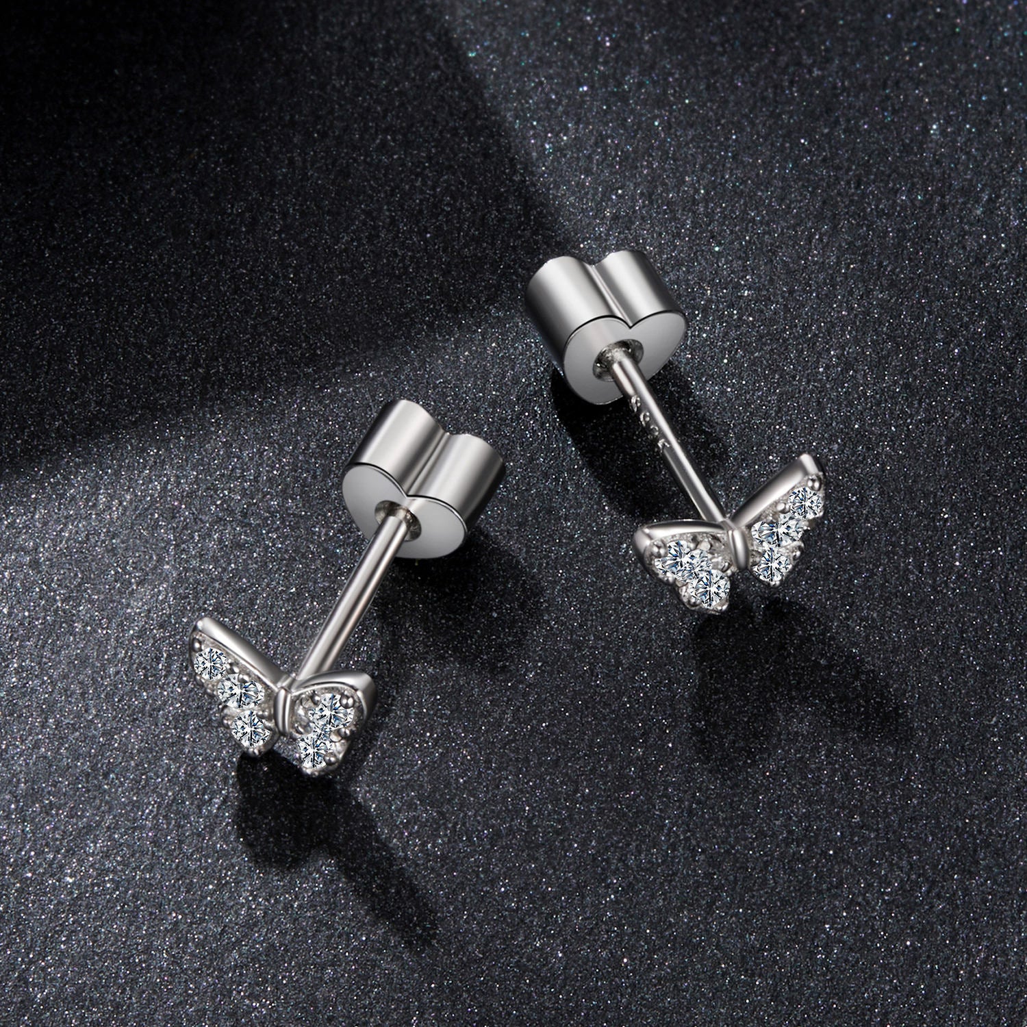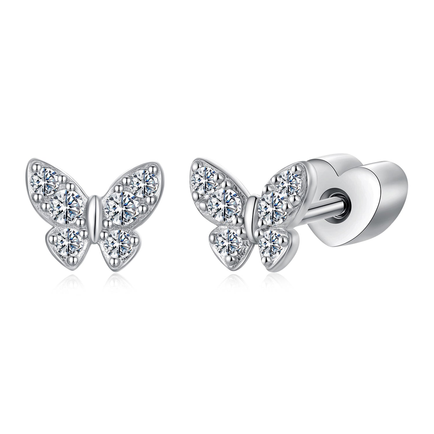 حلق فضة 925 شكل فراشة مرصع بزركون شفاف
