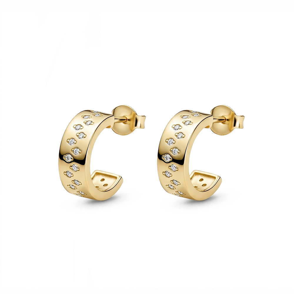 حلق فضة 925 نصف دائري مطلي ذهب مرصّع