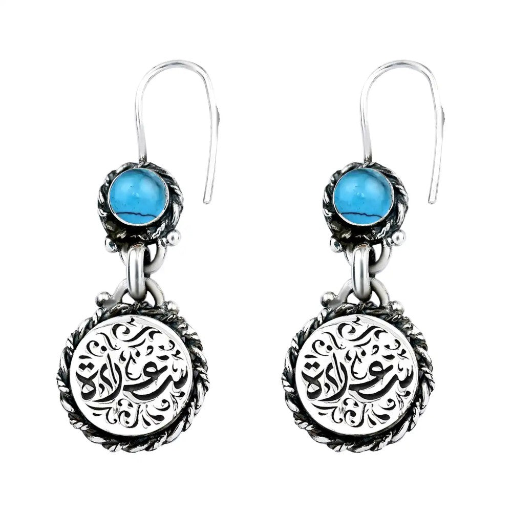 حلق فضه مصري حريمي عيار 925 متوج بحجر فيروز لبني,صناعه يدوي (سعادة)