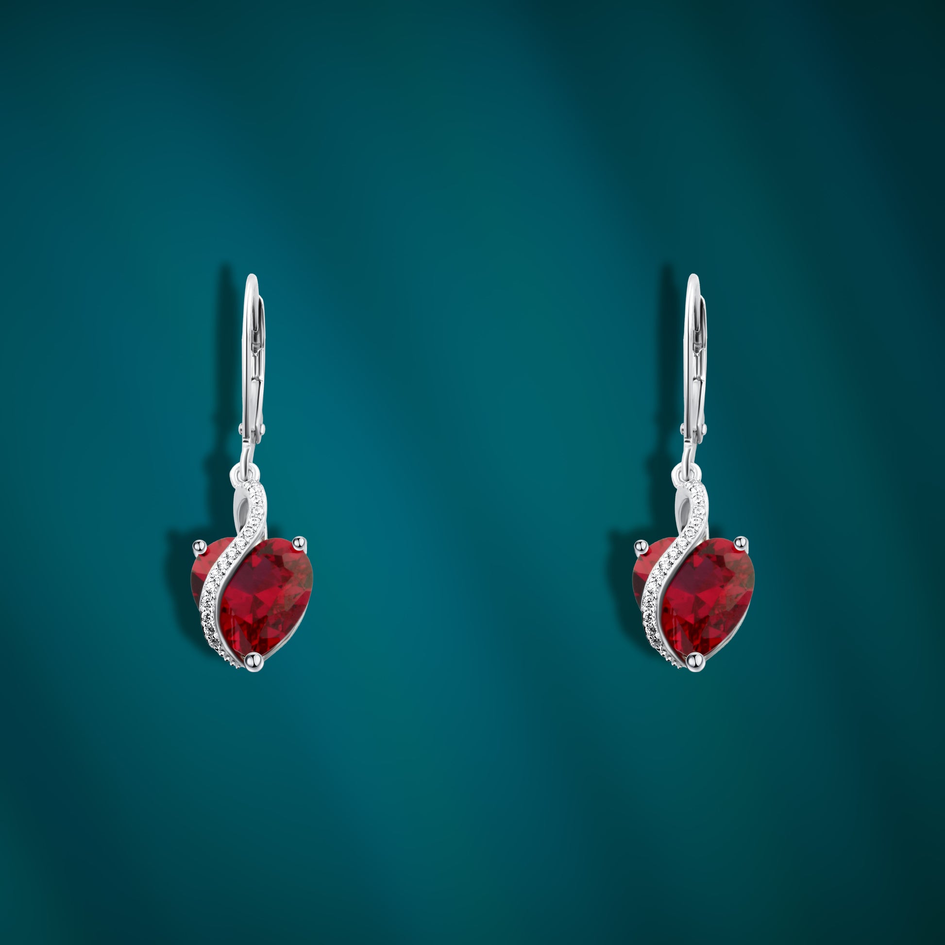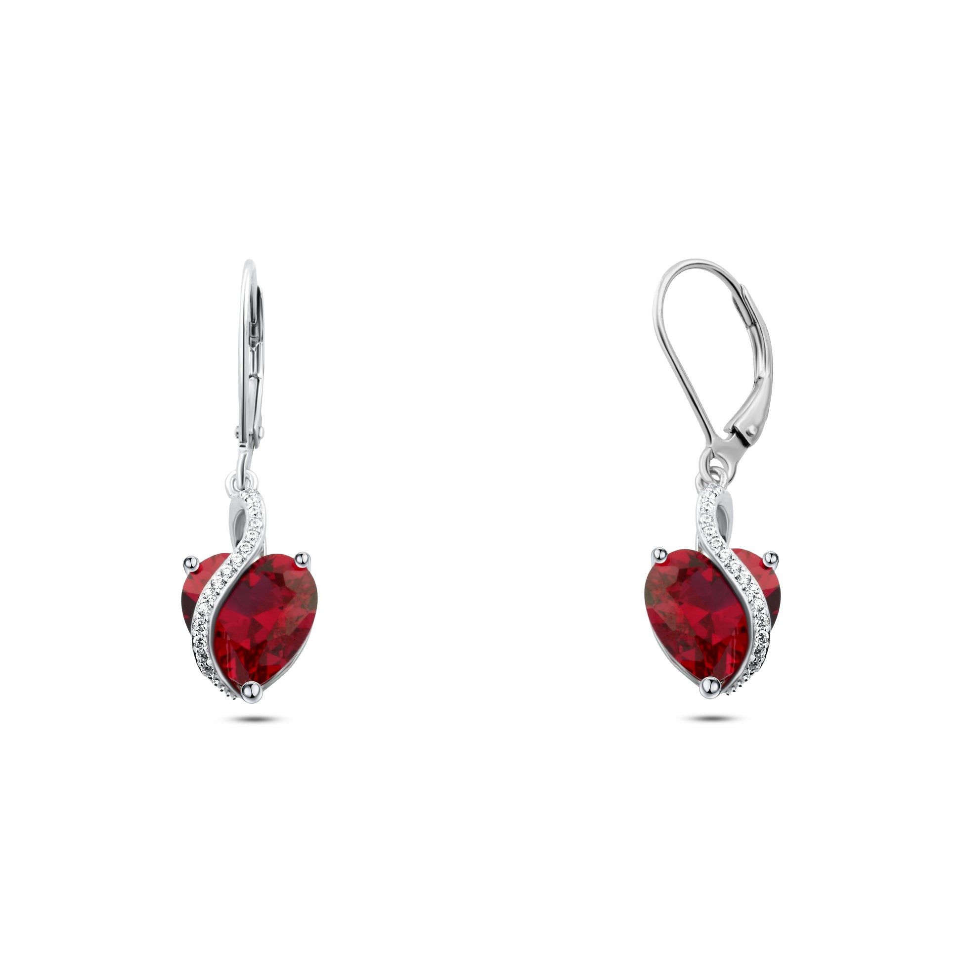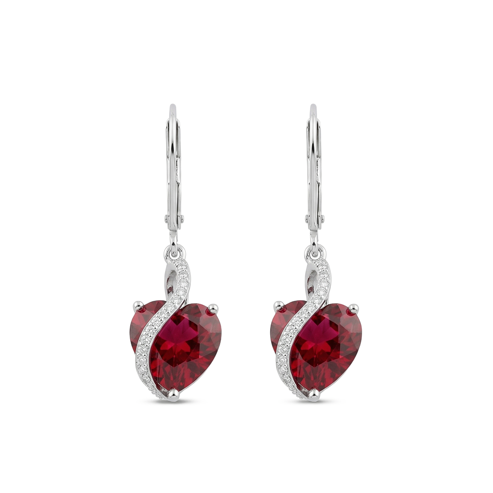 حلق قلب أحمر وفصوص لامعه فضة 925