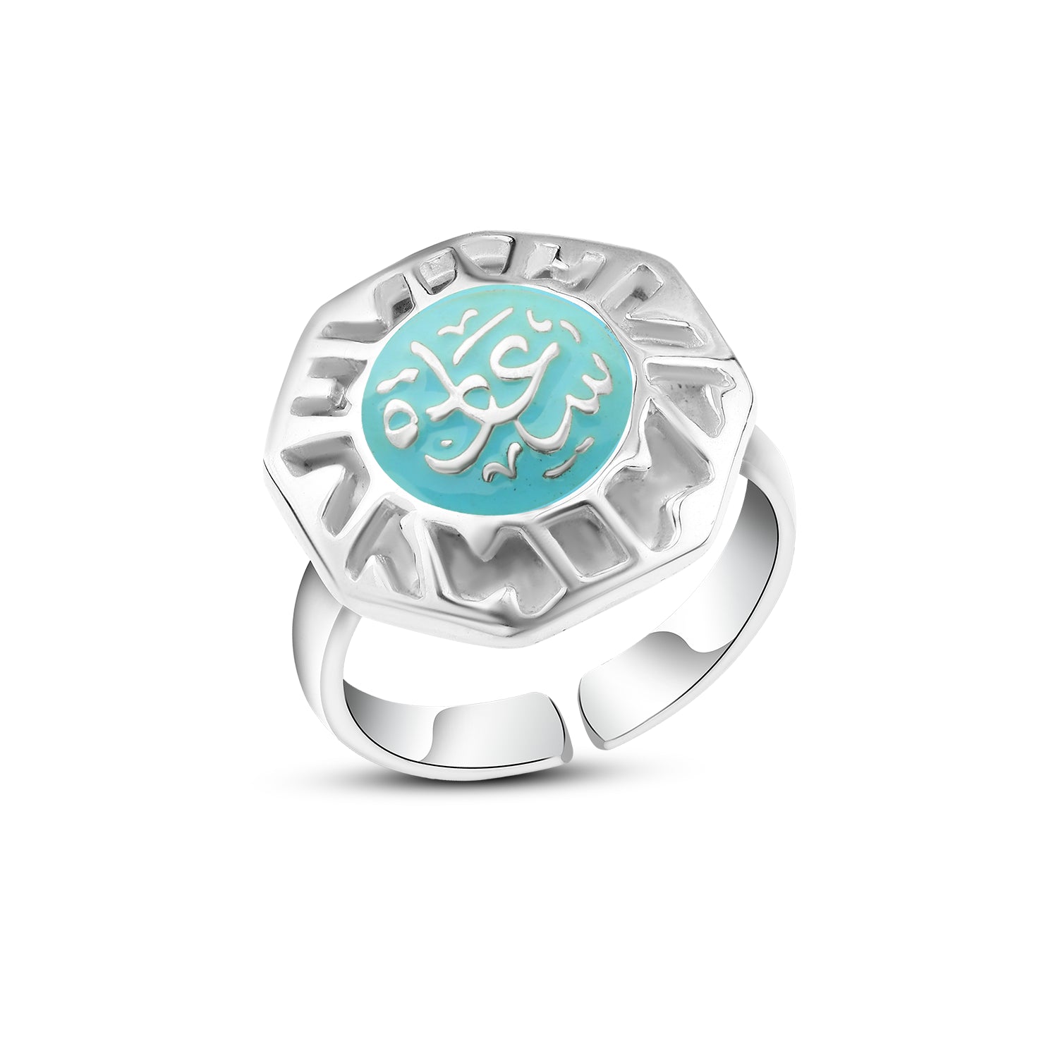 خاتم سعادة فضة عيار 925 بتصميم عربي أنيق