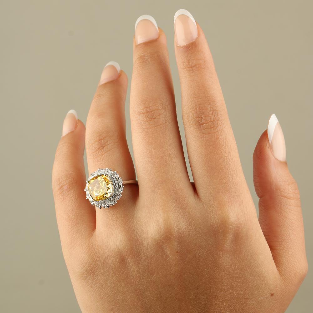خاتم فضة 925 فاخر بتصميم أنيق يجمع بين الفخامة والعصرية. يتميز بفص زركون أصفر كبير قص وسادة يرمز للإشراق والتفاؤل، محاط بدائرة متألقة من فصوص الزركون البيضاء الصغيرة التي تضيف لمعاناً يخطف الأنظار. تصميم الخاتم الراقي يمنحه إطلالة ملكية متألقة تناسب المناسبات الخاصة والإطلالات اليومية المميزة. مصنوع من فضة أصلية عيار 925 عالية الجودة تضمن المتانة ولمعانه الدائم، مما يجعله قطعة مثالية للإهداء أو لإضافتها إلى مجموعتك الخاصة من المجوهرات الفاخرة.