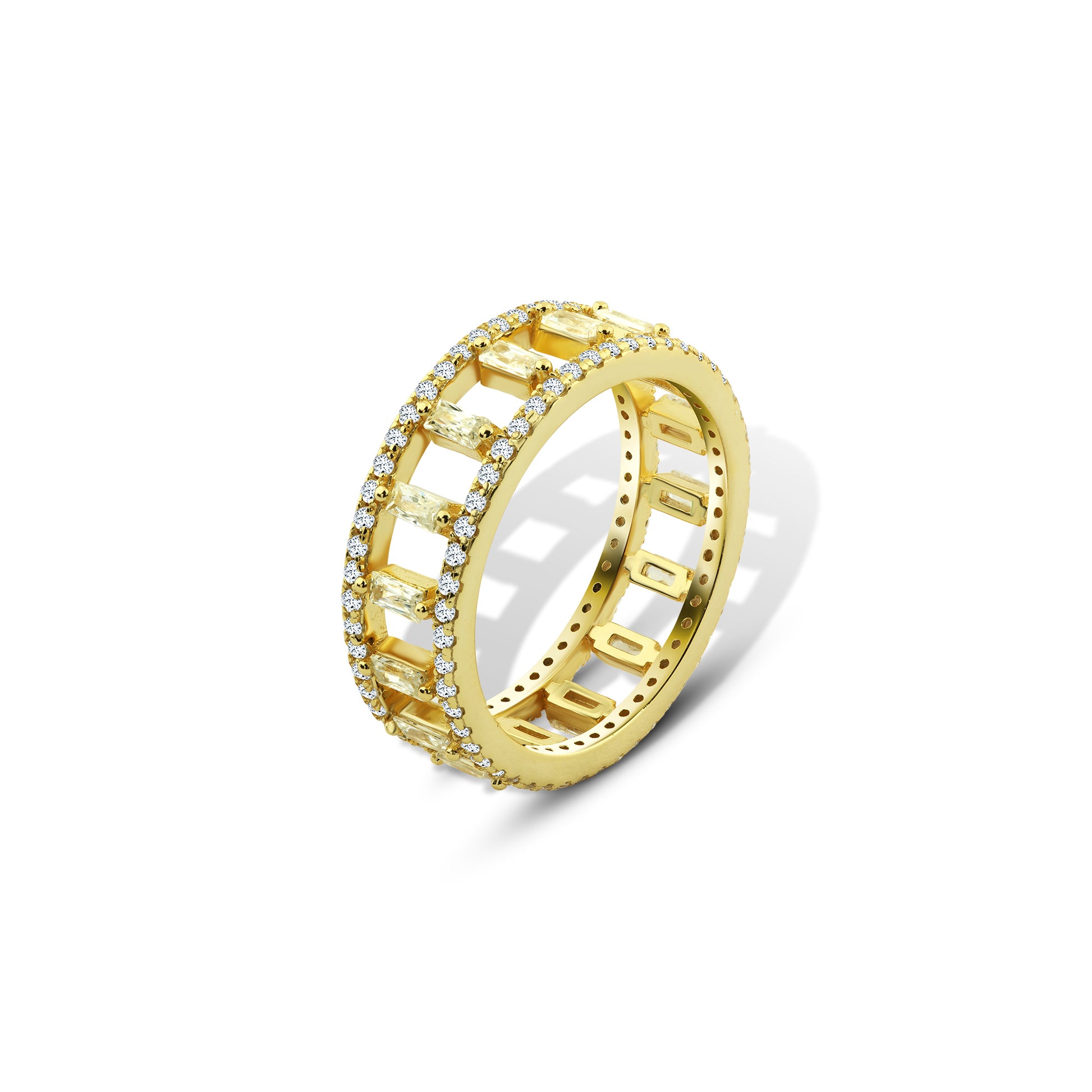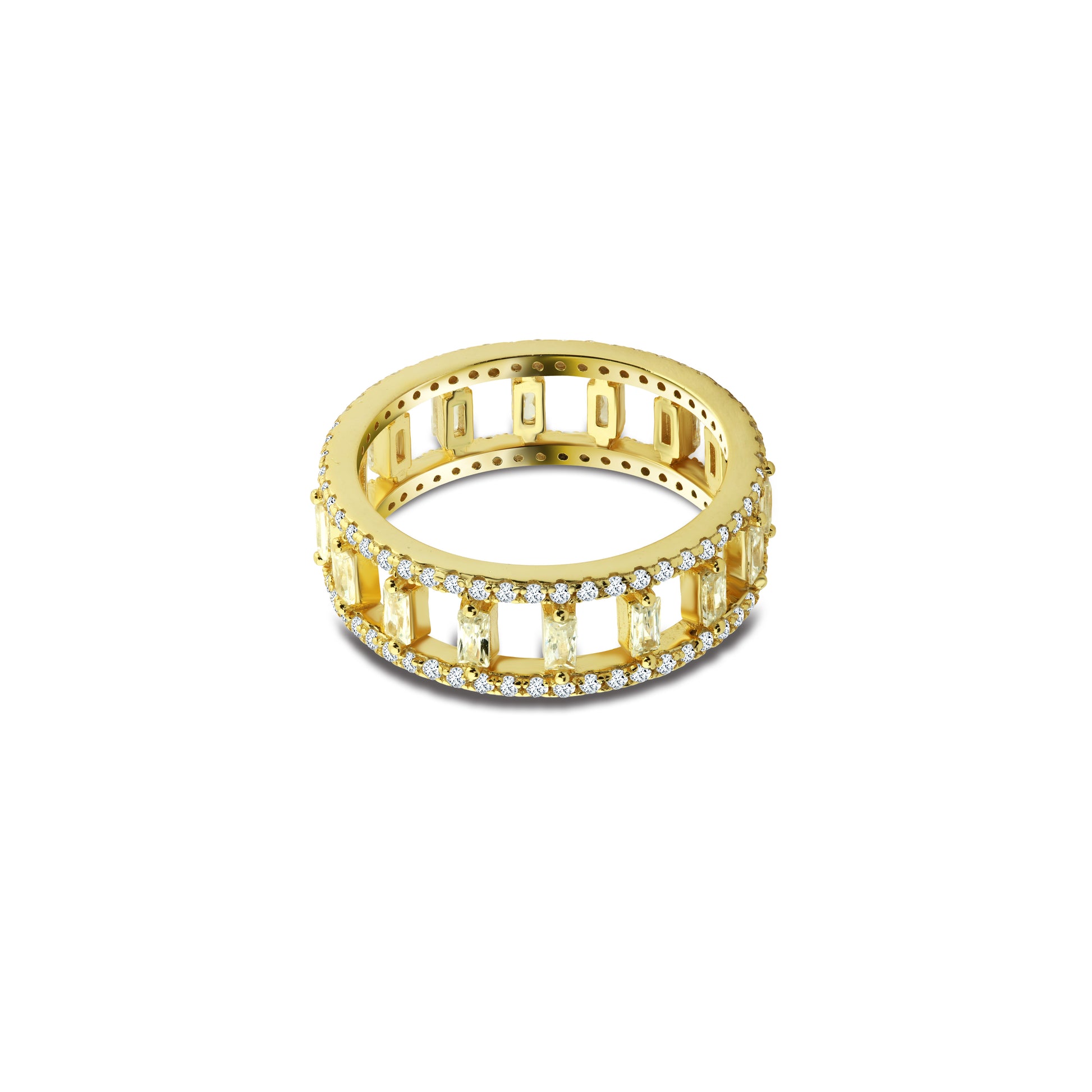 خاتم عريض مرصع بفصوص مستطيلة فضة عيار 925 مطلي ذهب