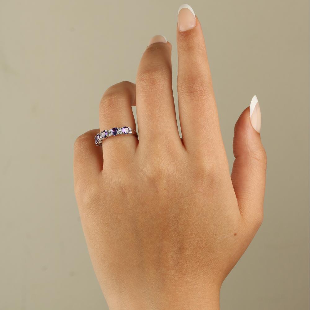خاتم فضة عيار 925 بتصميم انيق بنفسجي