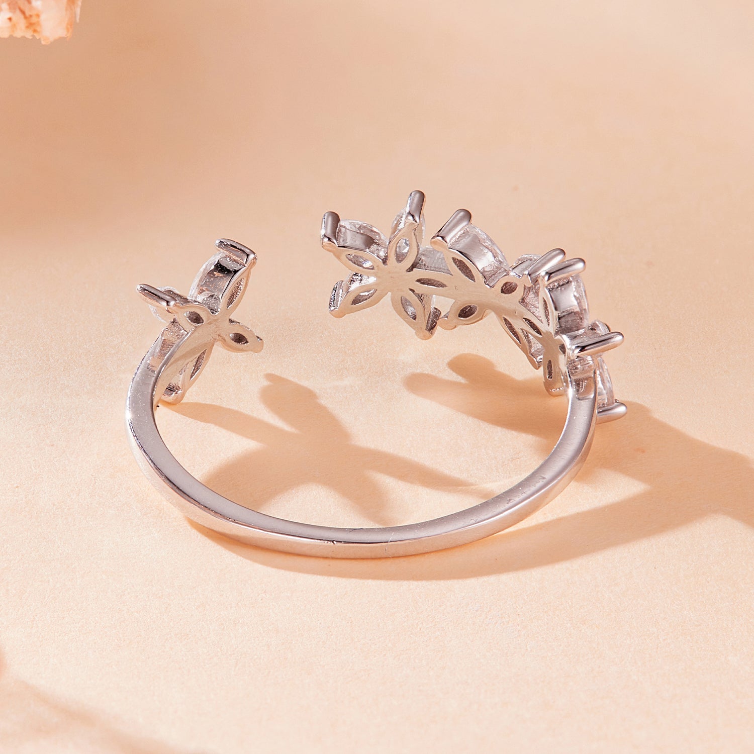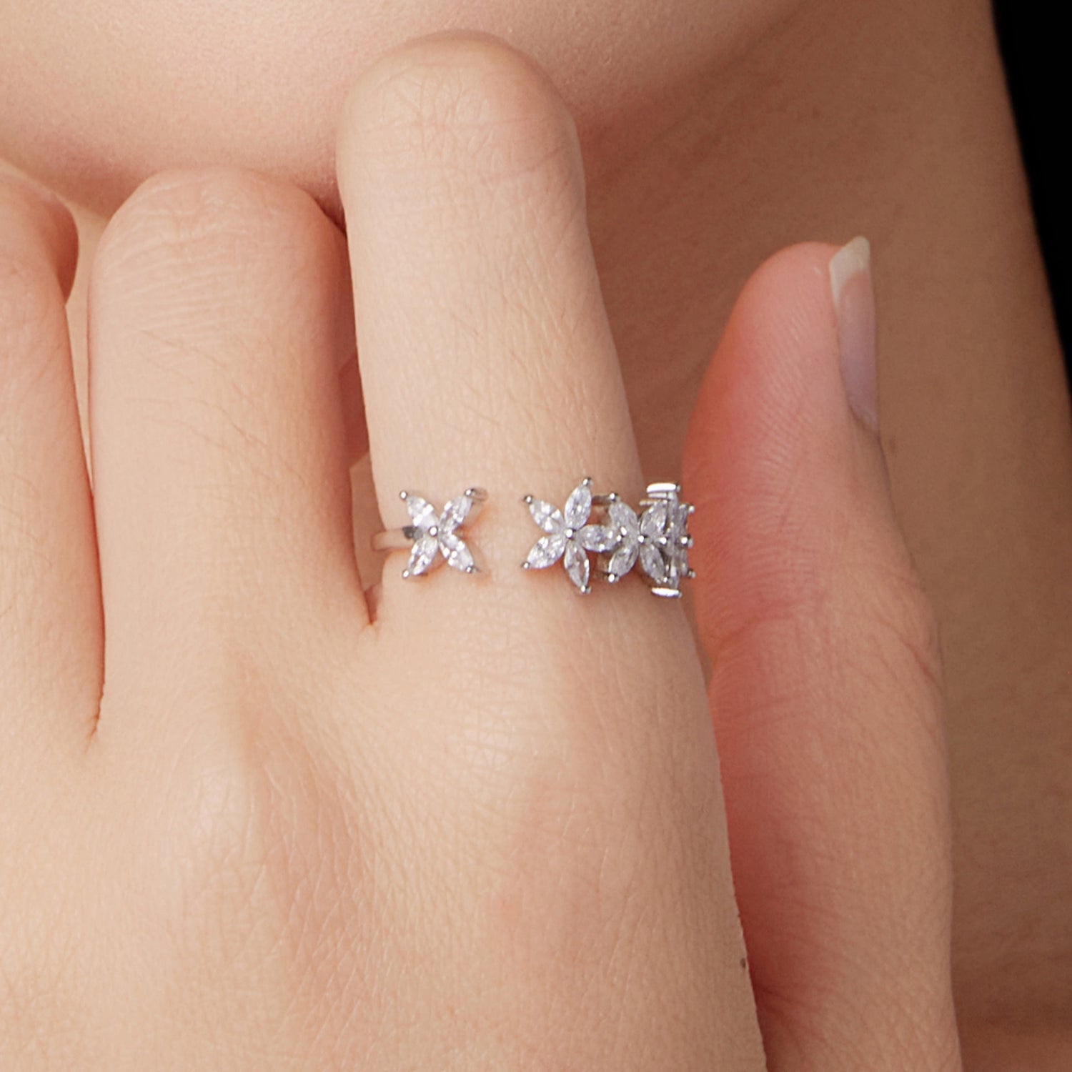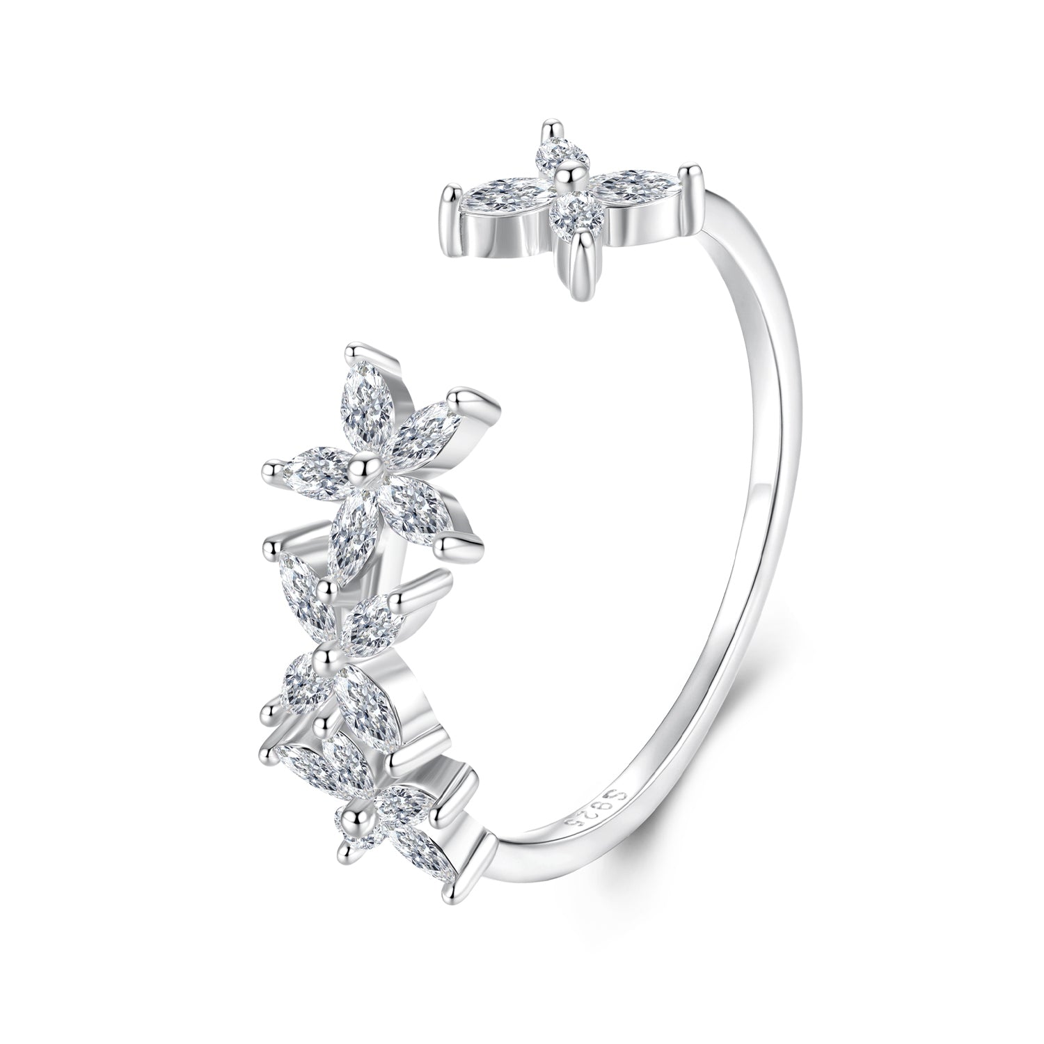 خاتم فضة عيار 925 بتصميم زهور مرصعة