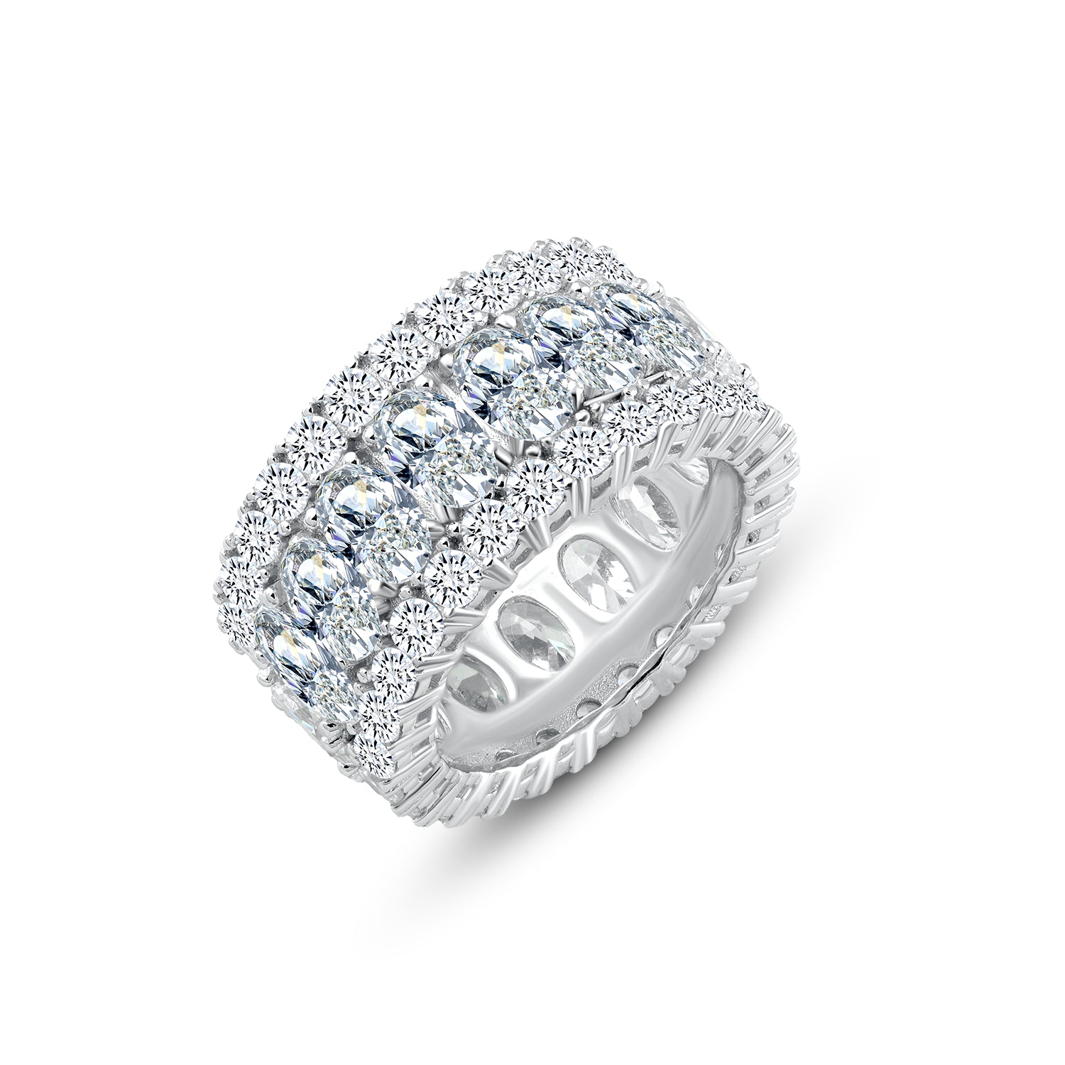 خاتم فضة عيار 925 بتصميم عريض مرصع بفصوص زركون متعددة الصفوف