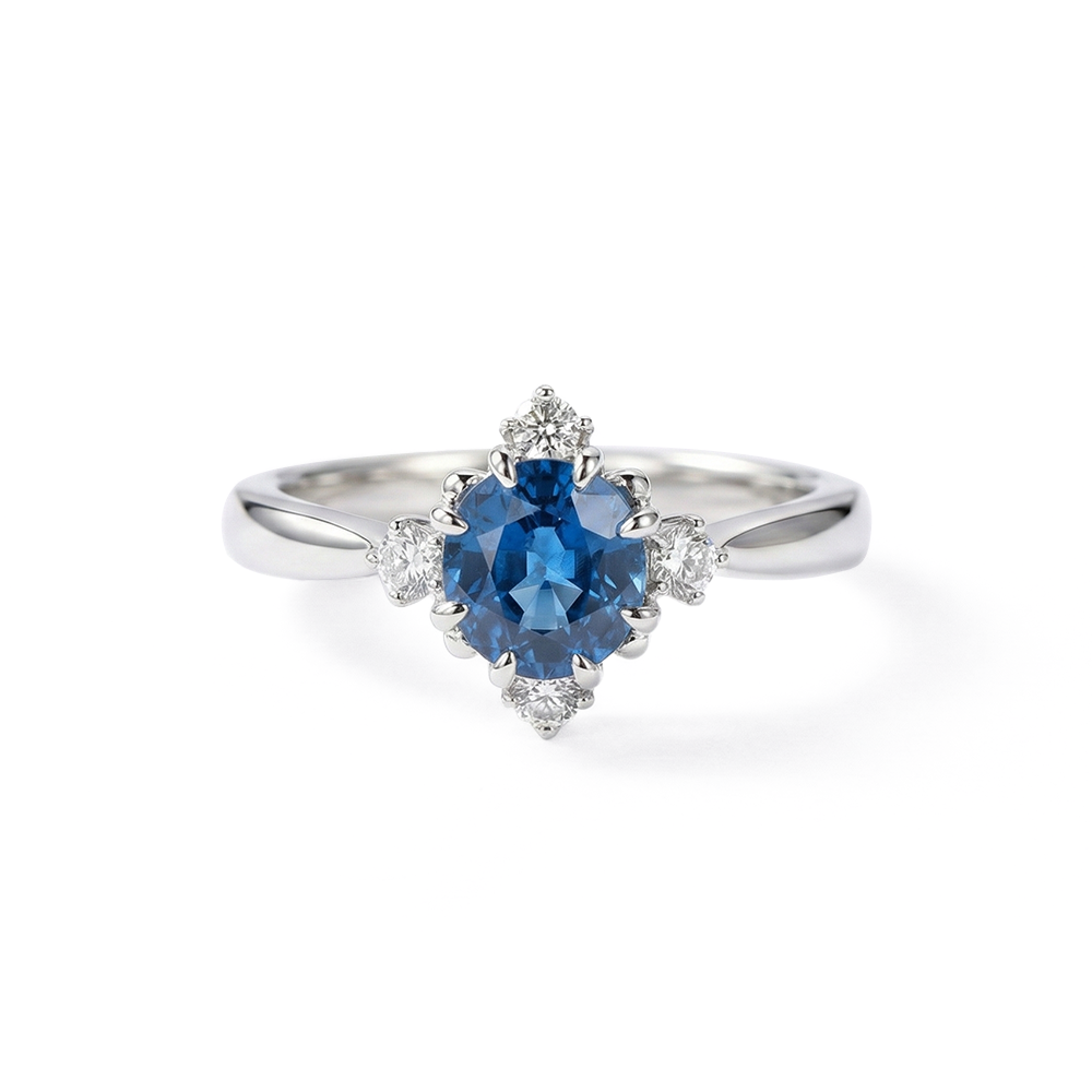 خاتم فضة عيار 925 بفص أزرق وفصوص لامعة